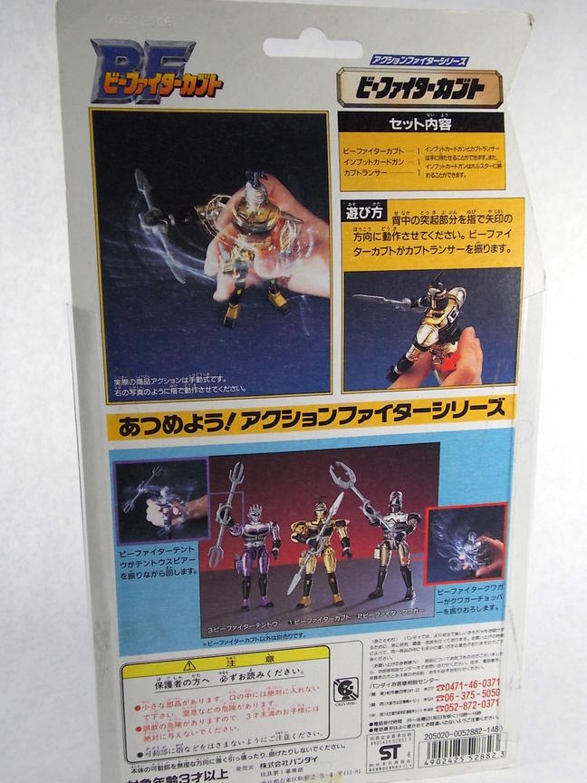 contribution to that effort. A special gallery for you of 3 vintage B-Fighter Kabuto Action Fighter figures; the titular hero B-Fighter Kabuto, B-Fighter Kuwaga, and B-Fighter Tento!