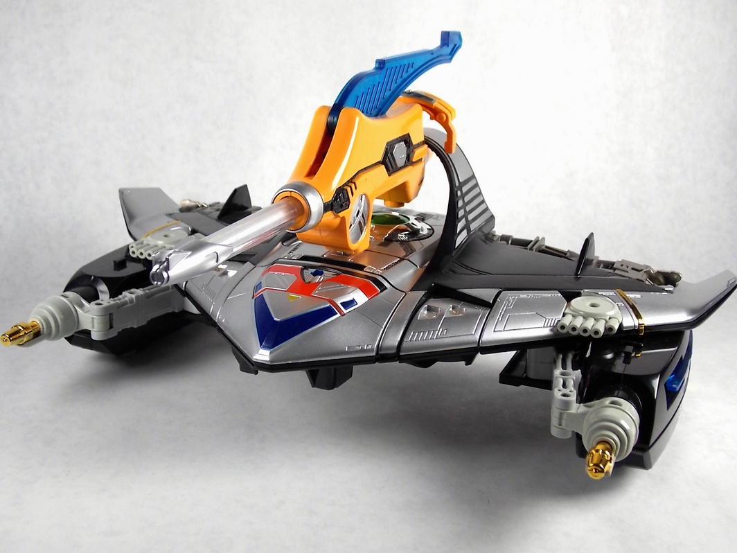 The Time Shadow is a sleek stealth jet that unlike Time Robo does not separate into individual machines. Though as a single vehicle and robo it's size rivals Time Robo. It does however have the unique ability to combine with Time Robo in both