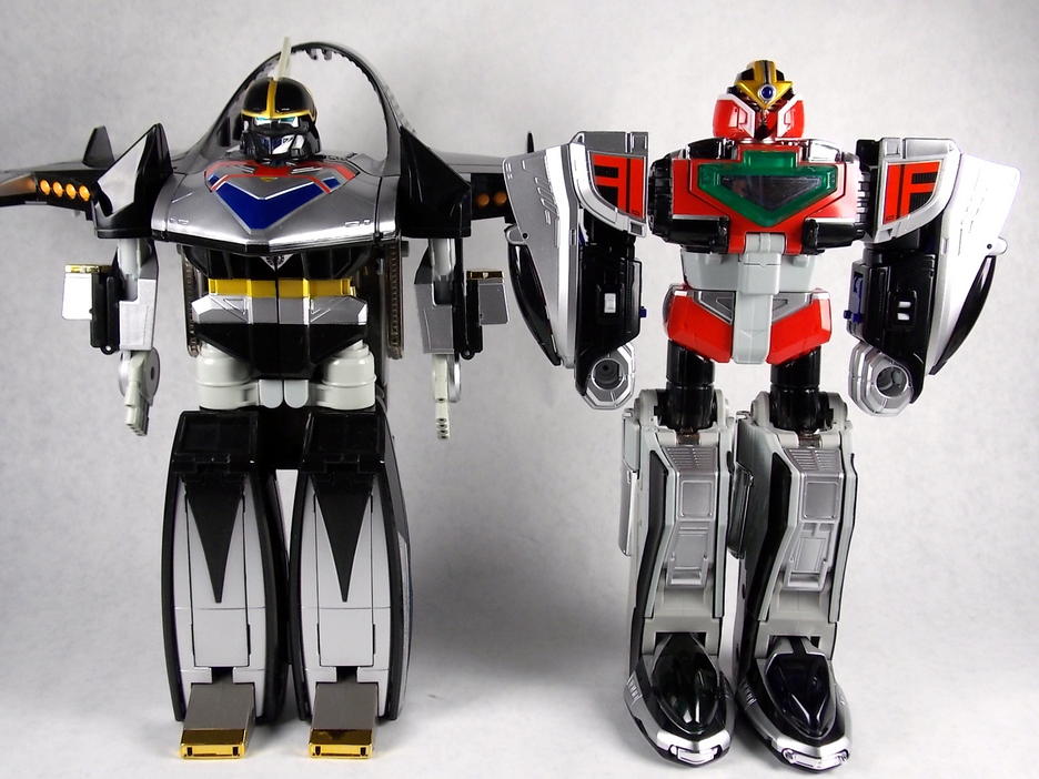 Known as Shadow Force Megazord Red & Blue respectively in Power Rangers. Also like Time Robo, Time Shadow features cockpits or rather a single cockpit for the separately released Timeranger mini-figures to pilot the machine!
