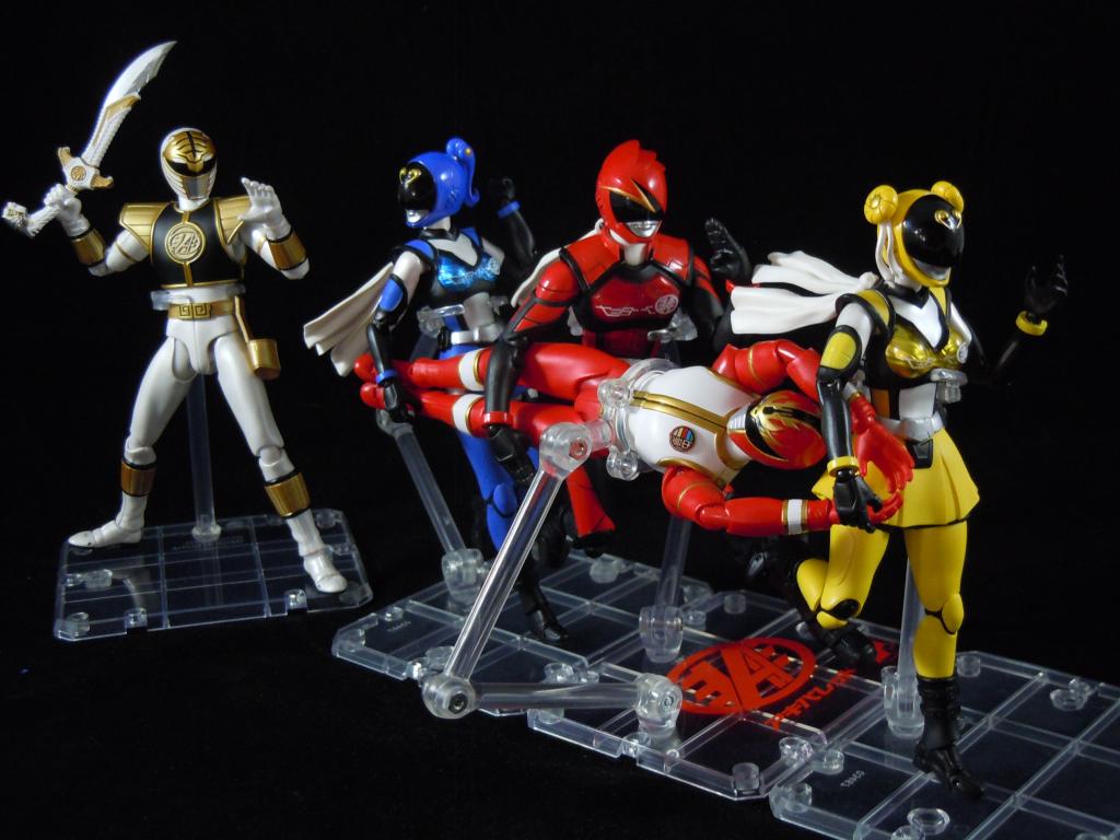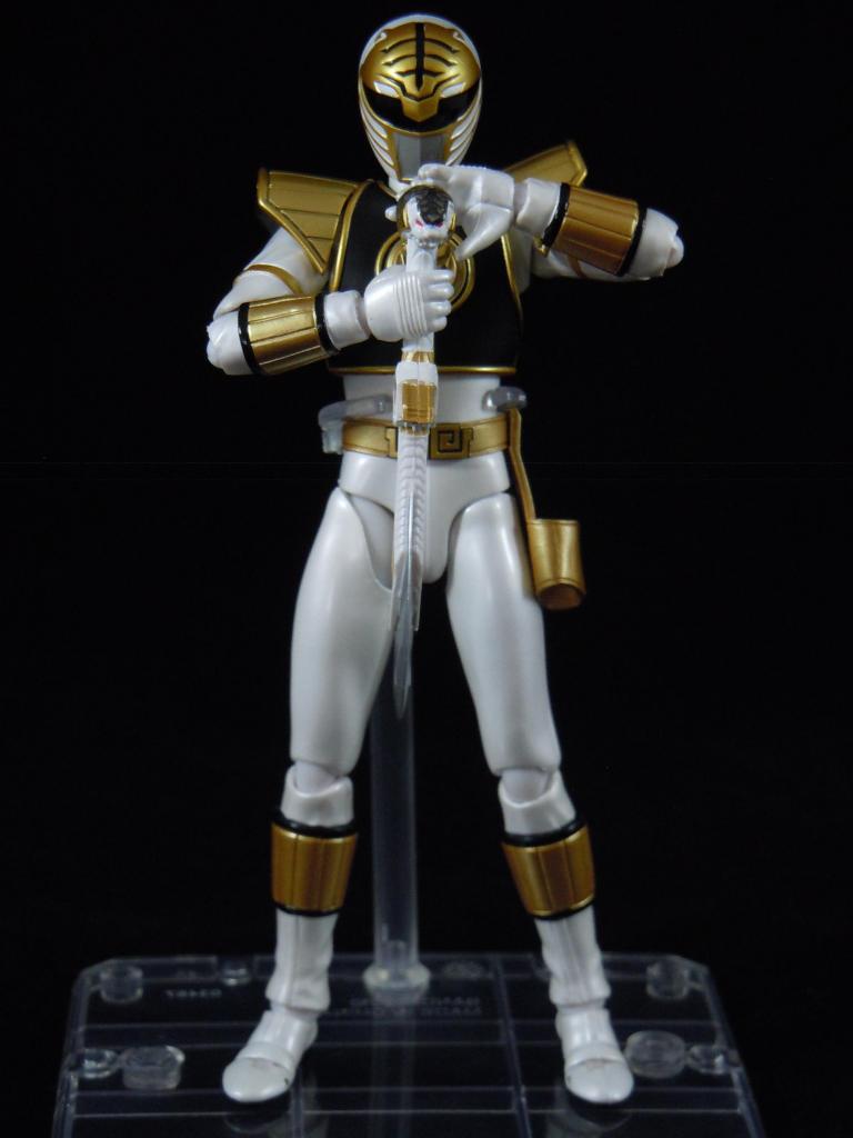 For Dairanger fans, he is scale accurate, being shorter then every other male Sentai Figuarts, just like Kibaranger's suit actor was, which is excellent. For MMPR fans, its pretty easy to cover up, just put him in a pose that has slightly bent legs or something. The height difference is only really noticeable when you stand him straight up next to another Figuart standing straight, so I doubt it'll bother people who are just getting him for MMPR. Standing Ryuranger and Kibaranger next to eachother, he about reaches Ryuranger's visor.