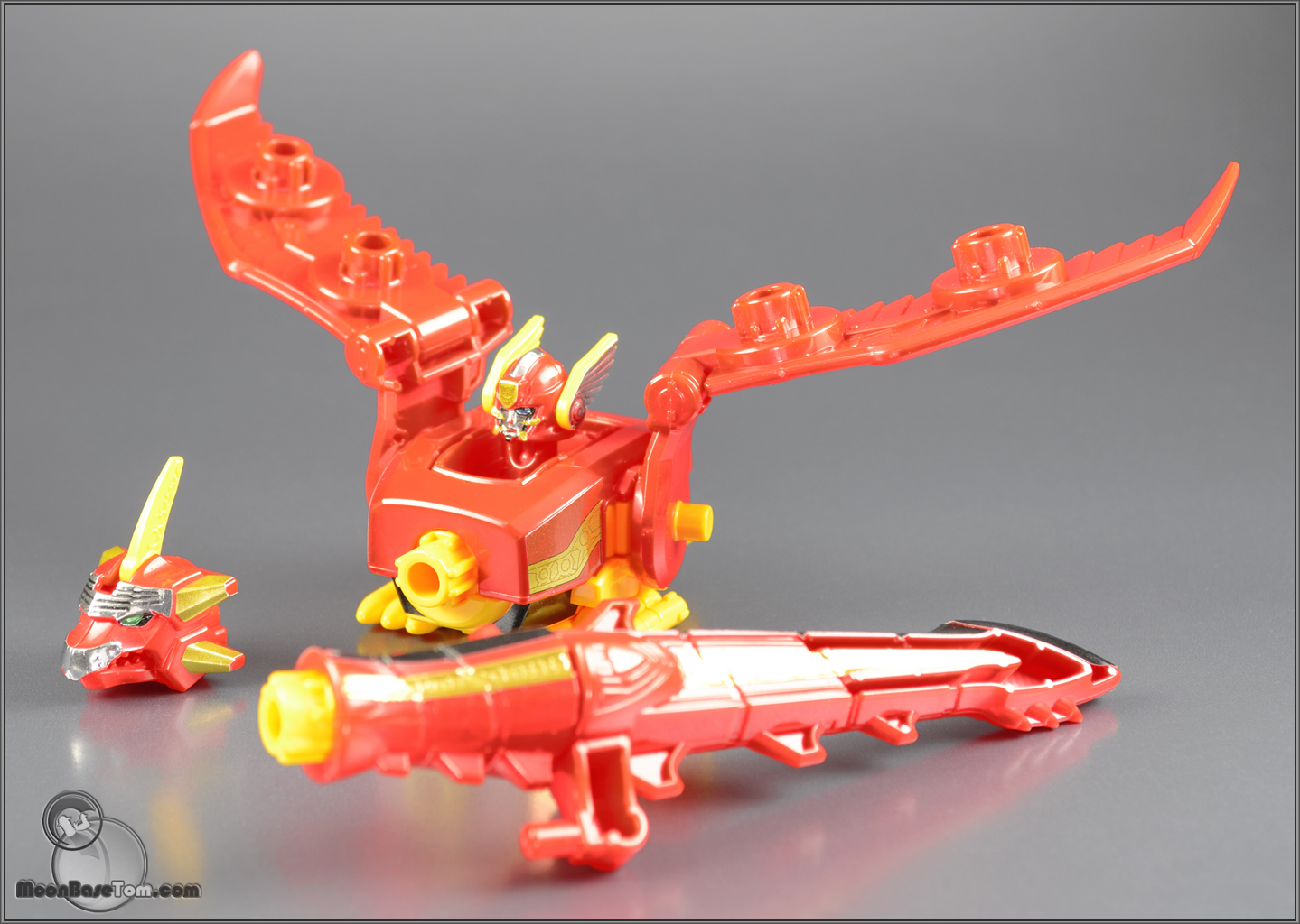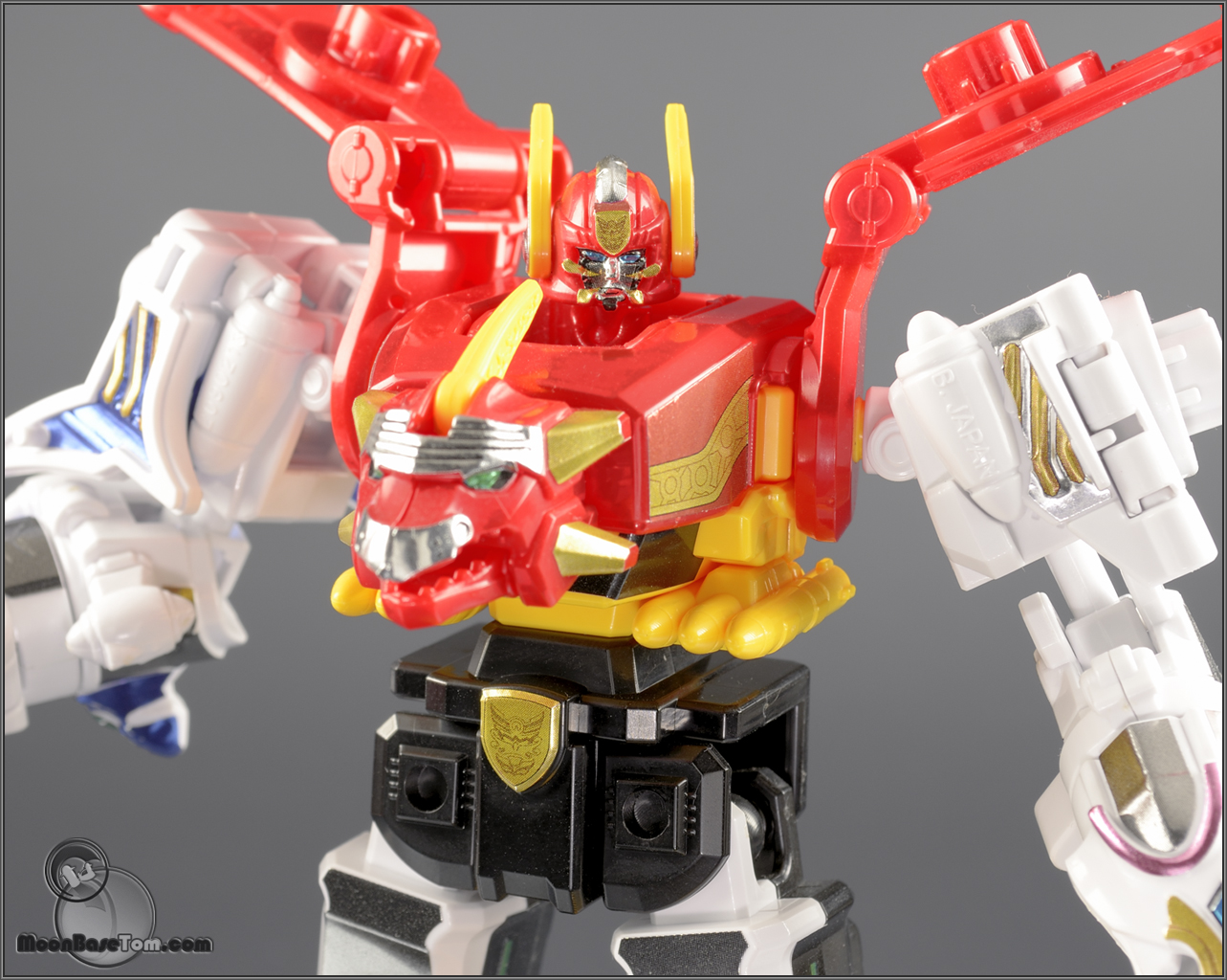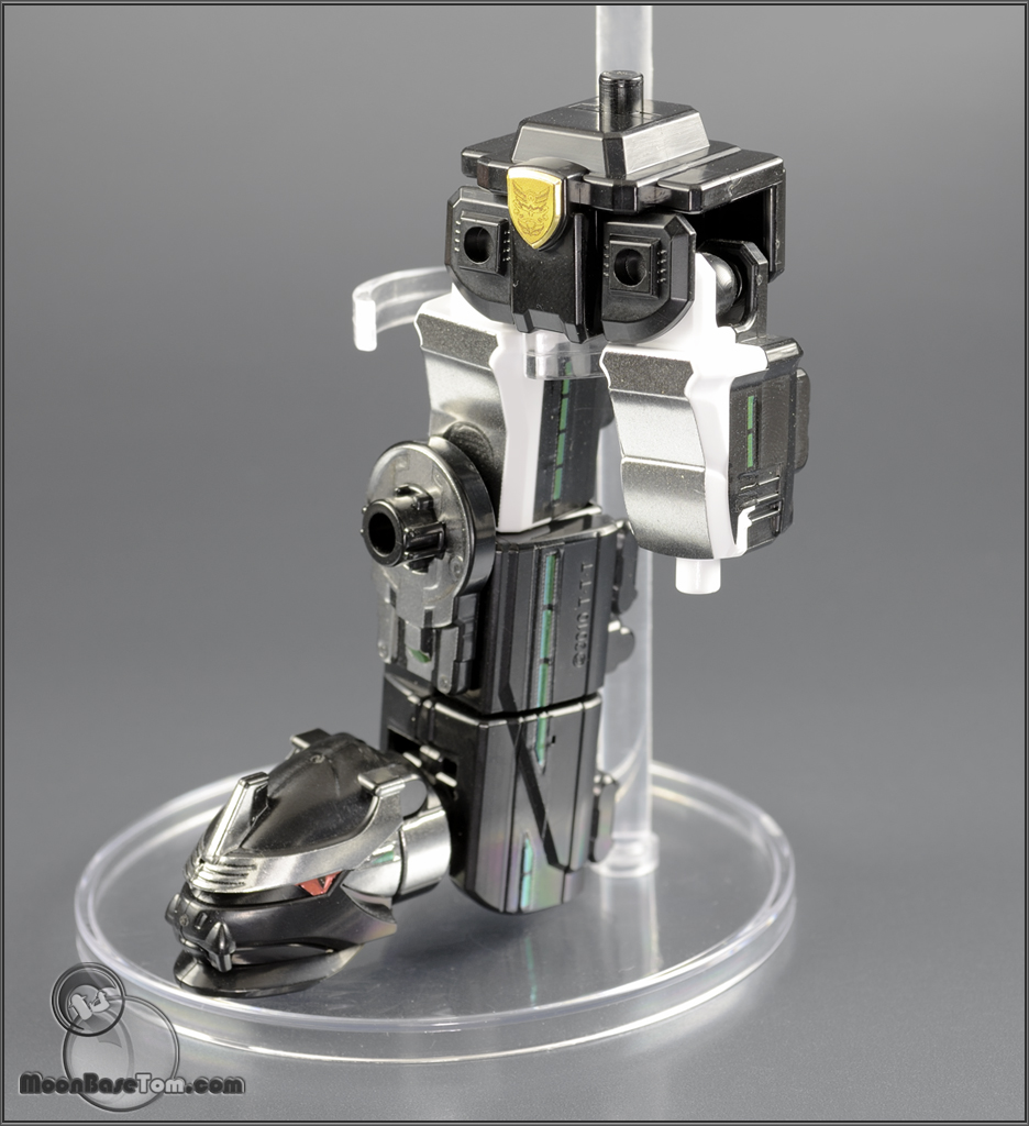 . This Gosei Great is from the special 10 box Goseiger set. If features shiny chrome labels rather than the typical matte labels. Also included in the set was Gosei Ground, and Datas Hyper. All with awesome chrome lables. The Goseiger kits are among my favorites, they stay very faithful to the DX toys while tremendously improving articulation. Usually the DX gimmick doesn't get translated in to its mini pla counterpart, but thankfully the Goseiger sets are an exception. These kits wouldn't be very fun if you couldn't swap the headers around.