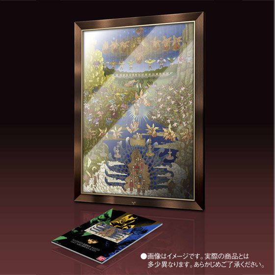 The set contains a booklet and piece of artwork, the artwork represents the picture that can be seen in the opening of the series and will be housed in a custom made frame included with the set.