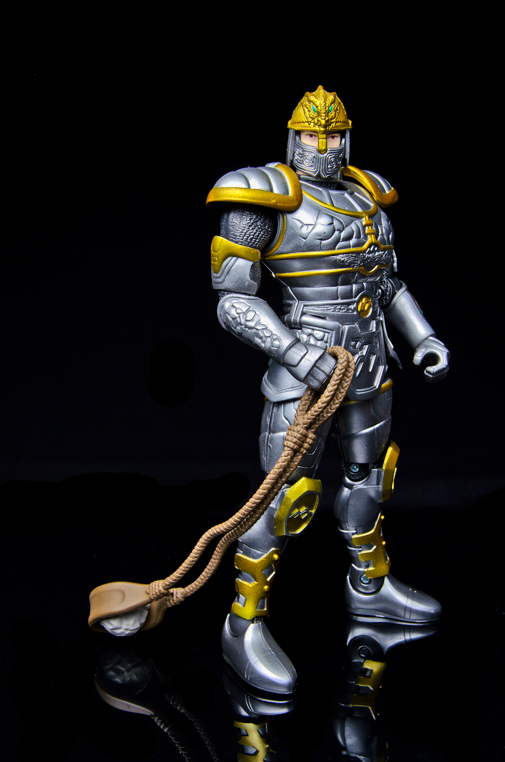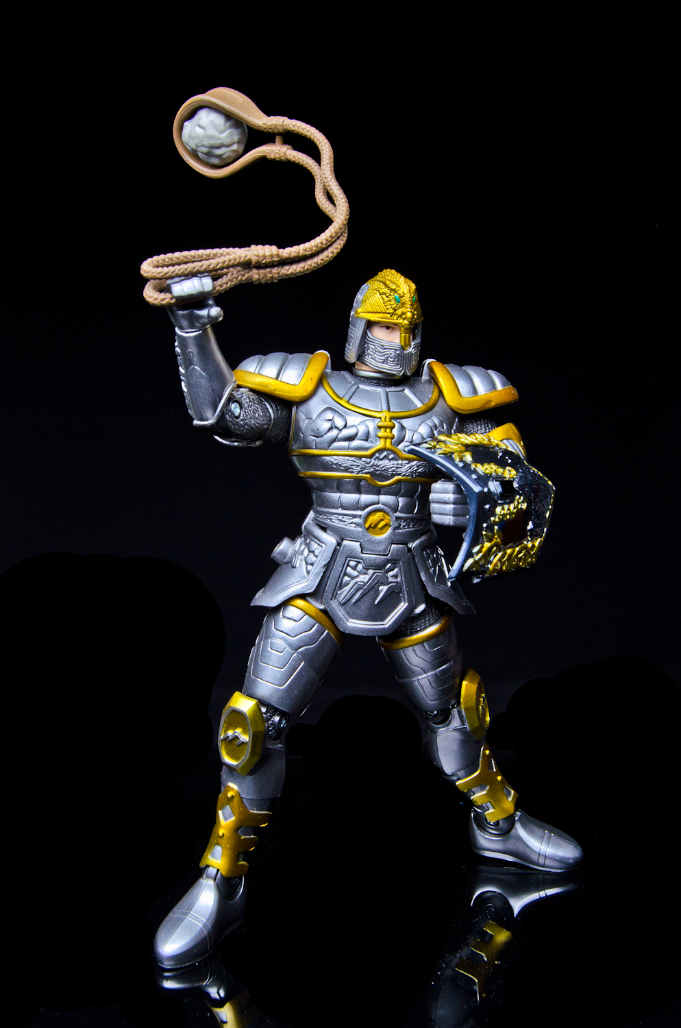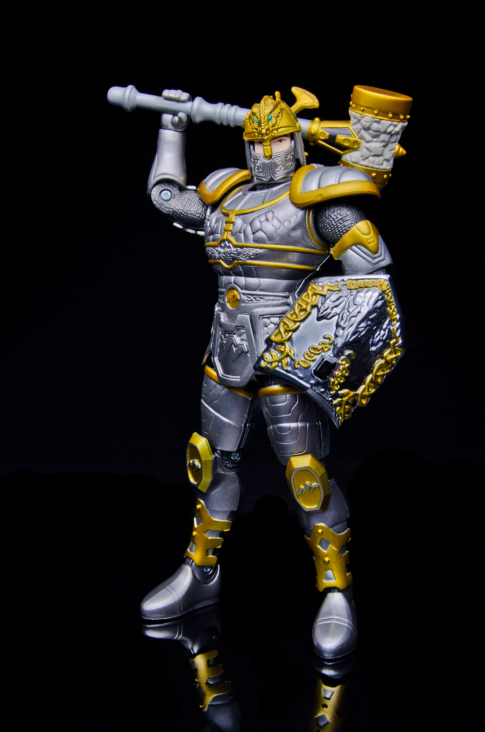 Everything that the 5 inch Mystic Knights do the 8 inch figures do better. Angus features 21 points of articulation, has 18 pieces of removable armor, and comes with the