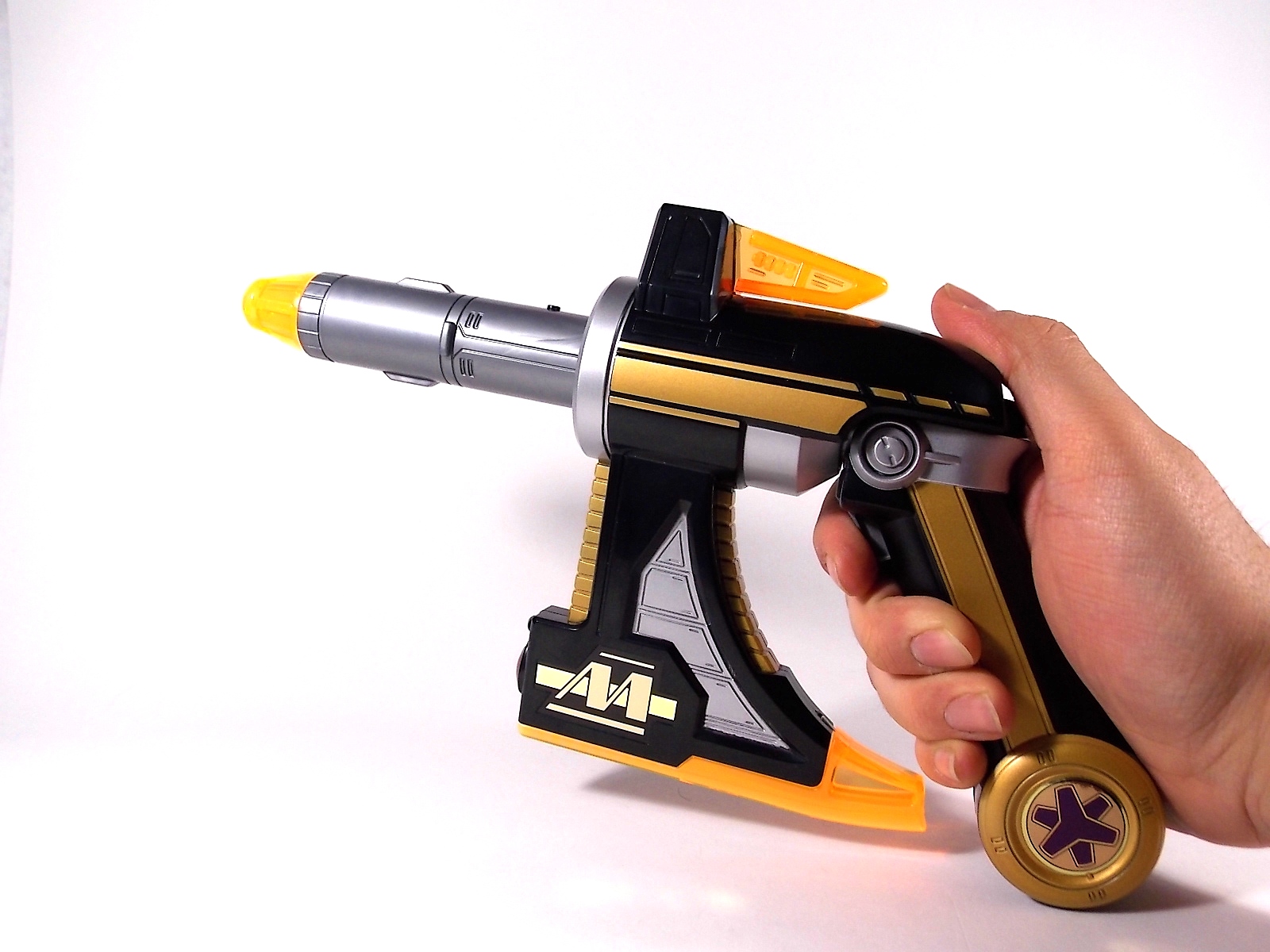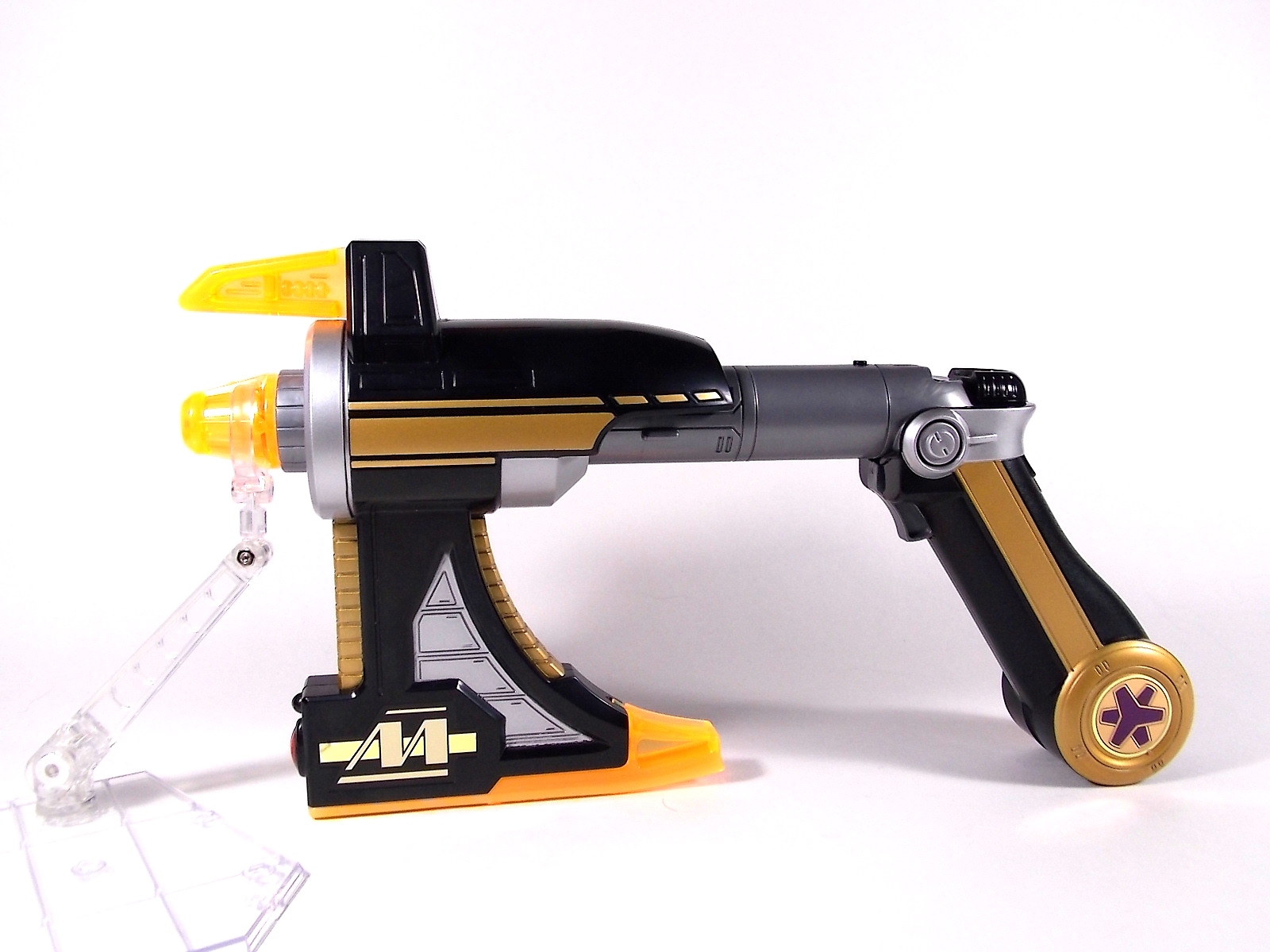 is the signature sidearm of the Titanium Ranger. Though this weapon was created for use exclusively in Power Rangers it actually fits incredibly well with the GoGoV weapons the series already features. The "deluxe" toy is roughly child sized so you won't quite get a good feel for the show prop. But it's functionally nearly identically to it. Although it's designed for a child, in
