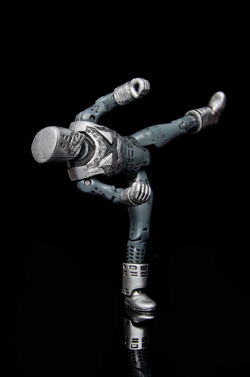 . The Xborg figure stands of course at approximately 5 inches tall and has a fair 17 points of articulation including 360º rotation at the head, shoulders, wrists, and ankles. Unlike the SMF Rangers and Prince Vekar that have skirts and shoulder pads that get in the way of movement, Xborg has nothing to limit his articulation. The figure has a fair amount of sculpted detail and the paint job (whether intentional or not) gives a nice weathered look to it. The Xborg only comes with one accessory, a short club/mace.