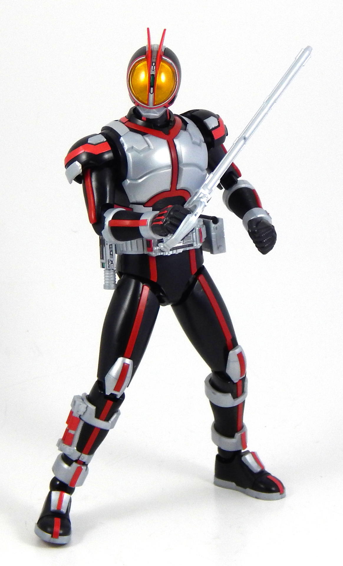 For this review, I build the figure as directed by the manual, to show what the stock build looks like. It's mostly quite nice, but to improve it a little, all of the red plastic lines could be painted over with metallic red, to make them match the stickers better, and, like the Figuarts, the fingertips lack the silver paint that is one of the standout aspects of the Faiz suits.