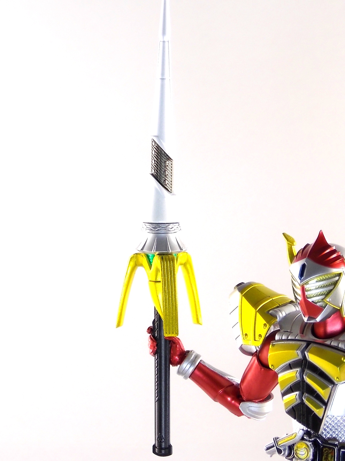 weapon is included, in one and a half forms. As packaged the Banaspear is in it's default non-extended form. An odd choice given that in show the spear automatically extends when Baron's henshins. So really this short version is included merely to recreate a mere few seconds in show. Luckily the tip can be removed and replaced with the sword ti[ that is the appropriate length.
