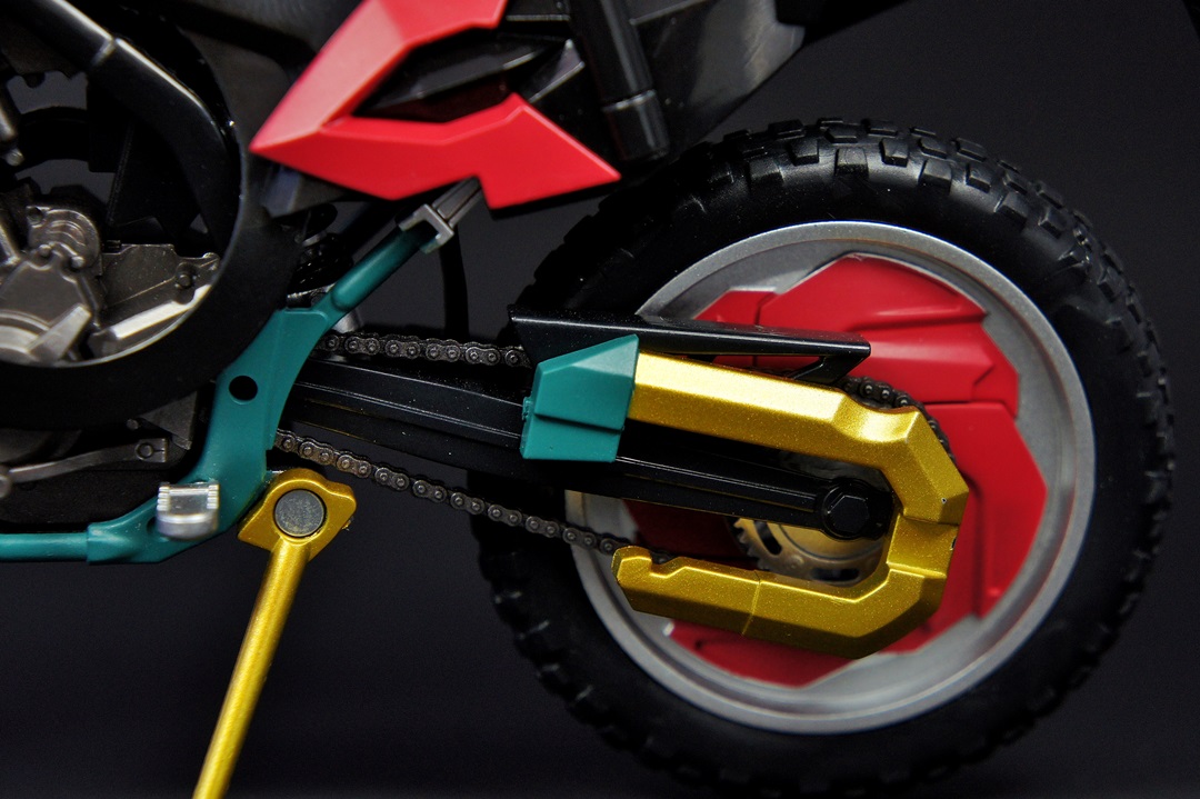 you will notice that the bikes share the same basic shell of a mold - the under carriage and the various pieces that kind of round out the shape of the bike are identical. However, the remolding of the rest of the bike is done and it's done well - I'm especially fond of the rose at the front of the bike. The extra detailing done for the spokes and the chains are really, really nice - check out the pictures I took to see what I mean.