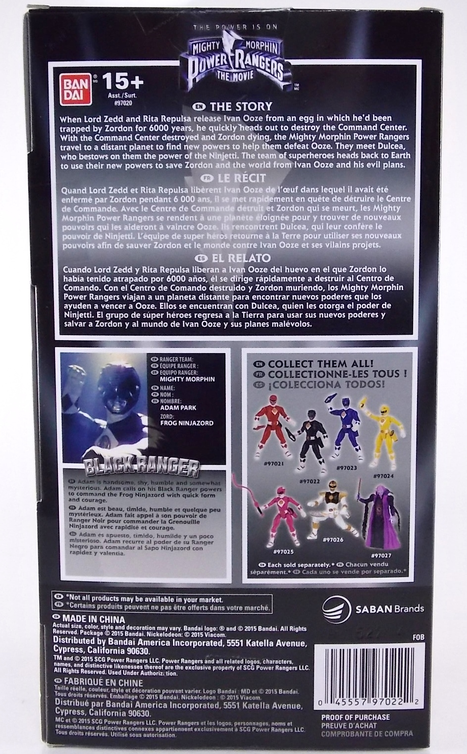 follows the same basic formula. Packaged in a triangular box Bandai has done the best job they could at evoking the look of the vintage toys from the original movie toyline. Just as with the Legacy Mighty Morphin TV themed figures this box perfectly replicates the look of the movie toys, right down to the more bare bones black & white colors. It may look a little more drab but it's still a great package. Included on the front of the box is a call out to the 1995 film and to further that connection on the back is a brief description of the films plot. Even going so far as to mention