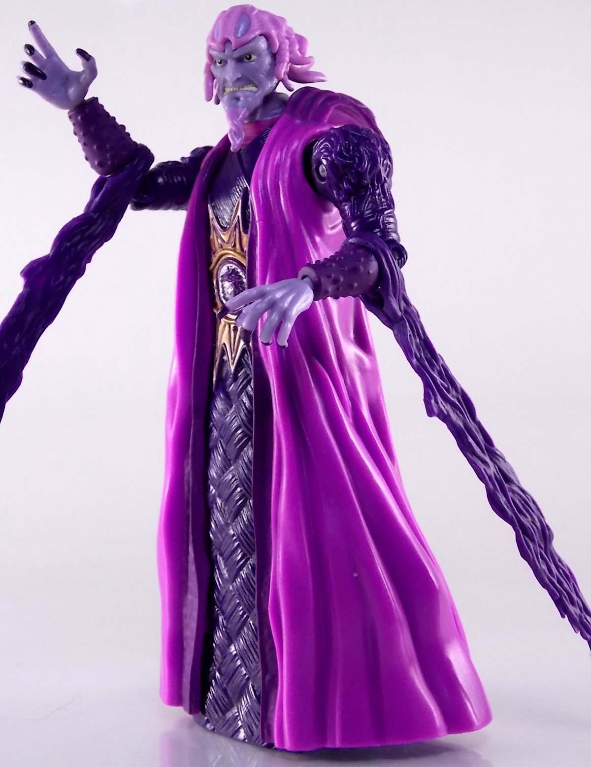 is a bit of a different beast than the Movie Rangers are. As far as the sculpt goes it's quite nice. The details are all there, but much like the coins and chest emblems on the rangers, a lot of Ivan's detailing is kind of soft. Despite being the one wholly new mold in the entire line, Ivan is the blandest figure. Many of the body lines and details take direct inspiration from the original Evil Space Aliens Ivan figure. The arms, cloak, and waist detail in particular are nigh identical. The strange face sculpted into Ivan's Belt is properly colored though, as is quite a bit more of his body this time around. Where the vintage figure was made on the fly during the films production, this one was made nearly 20 years after. Which makes it all the more disappointing when comparing the two.