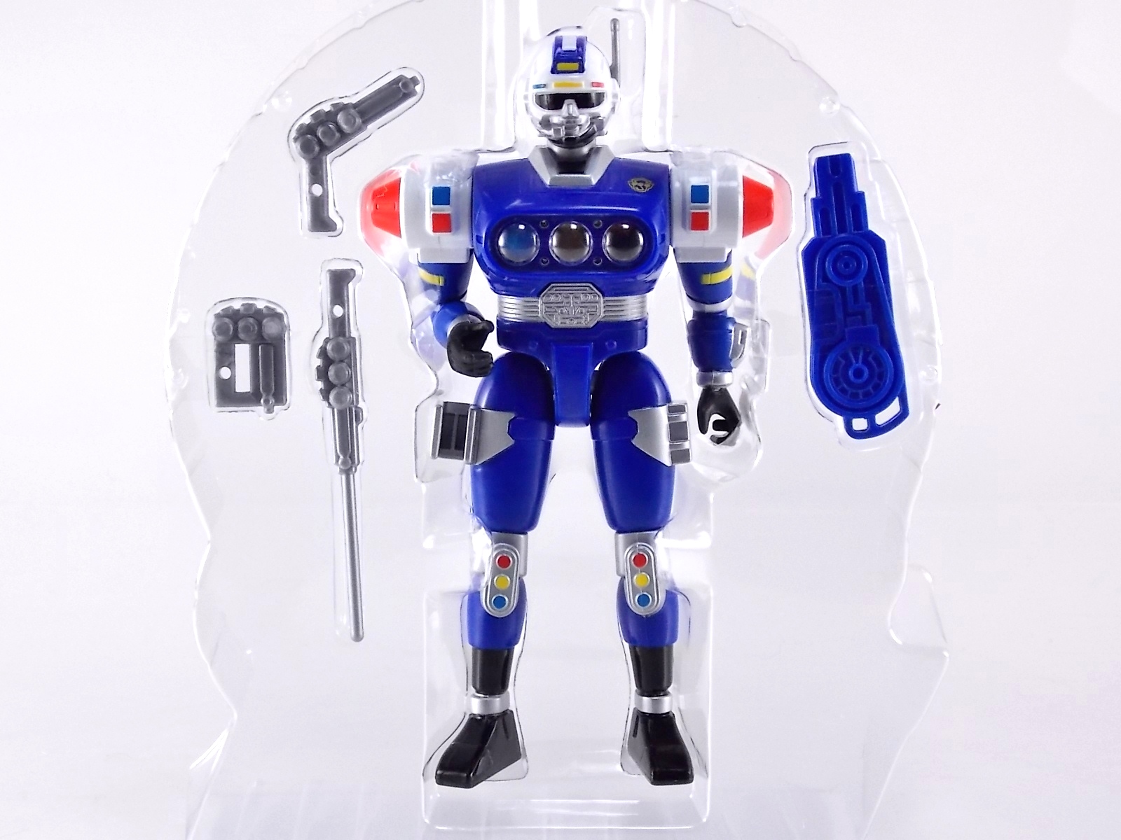 gallery from last year for a look at similar packaging. It's got the usual show call outs and crossells for other figures. The funniest being the Chromite figure. The generic grunt villains of Carranger (Wumpers as they were knoww) went mostly unused for the Turbo adaptation save for a handful of episodes and that toy. Interestingly enough the color variety advertised is one that appeared in neither version of the show footage. Oddly enough the front of the package also mentions the