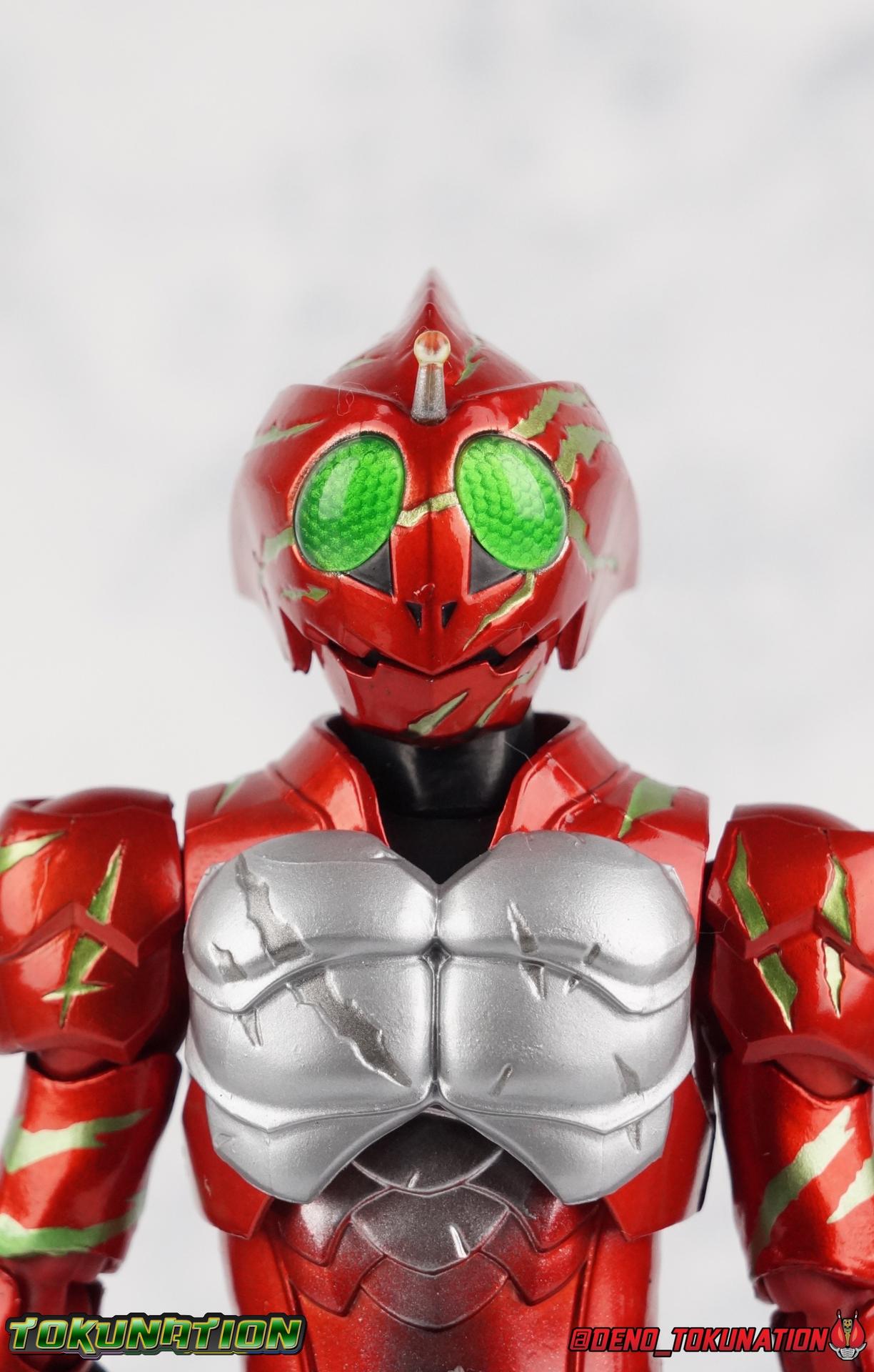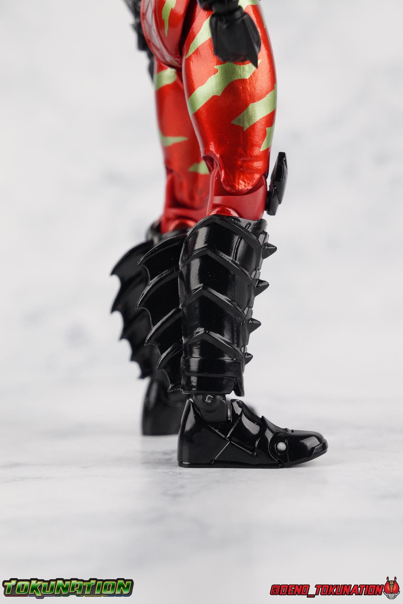 articulation is where he gets a leg up on Omega. Omega felt a bit stiff and limited by the more mechanical looking nature of his torso armor. Whereas Alpha has a more organic feel too him and is less bulky, the upper body rotates around the abdomen really well. I love it when you can get figuarts in like wild feral looking poses and Alpha is great for that. Alpha also has some excellently molded scaring on his torso that I think a lot of people expected to just be paint apps. Thankfully Bandai went the extra mile.