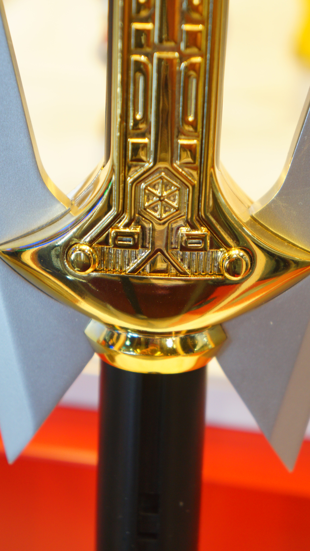 Will feature lights and sound. It's heavy - I held it. Functions just as in the show in terms of the blade being able to move up and down. Fall 2018.