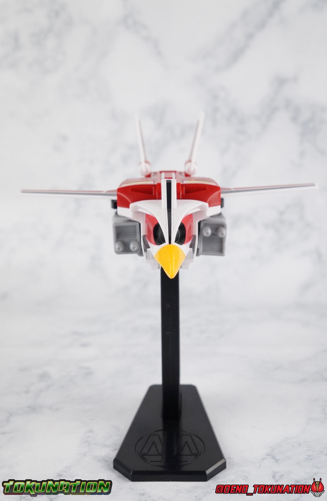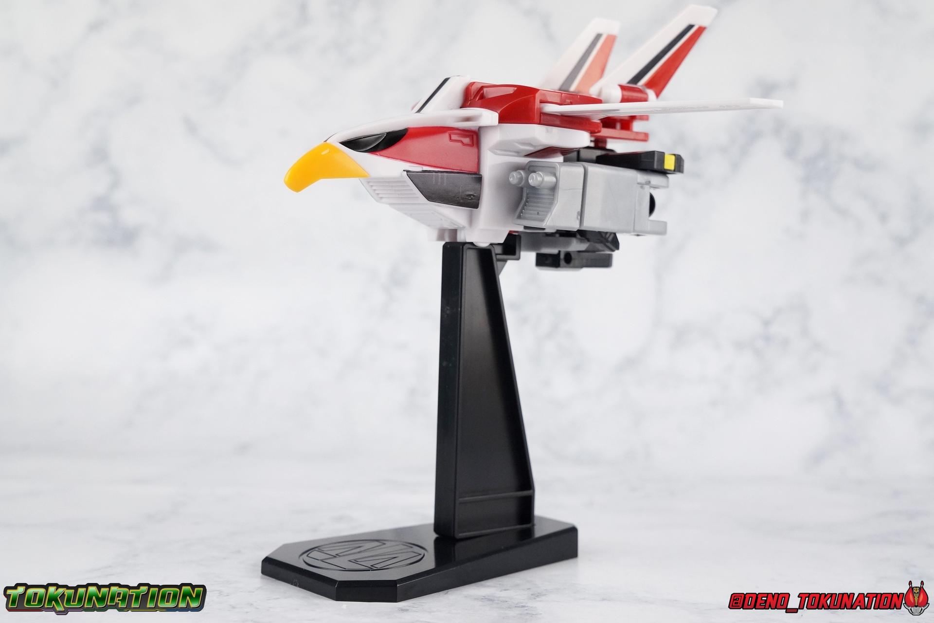 it can stand on too. The grey chunks that become the Live Robo's thighs in combined mode have caps on the end that can be removed, when done you can extend these bird legs out. Though they don't serve a ton of purpose, you have to lean Sky Machine pretty far back to make use of them. However, this piece of the set also includes the parts to make a