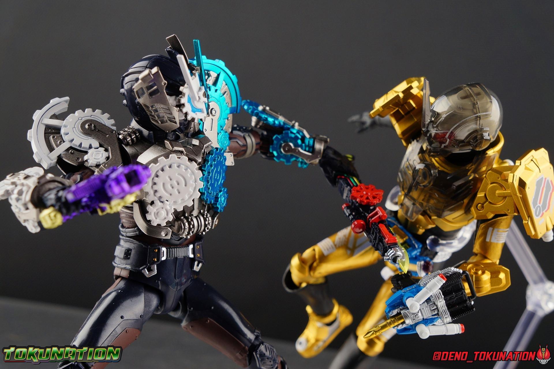 This is a really gorgeous repaint of the original Transteam Gun, and weirdly enough, it is *not* a repack of the one that came with Kamen Rider Rogue. Rogue's was a recast in translucent purple with gold & green detailing. Hell Bros Steam Gun is an actual metallic purple repaint of the weapon. It's subtly different but really nice. It's still capable of accepting Full Bottles and or Gears, and can combine with Steam Blade parts which are included.