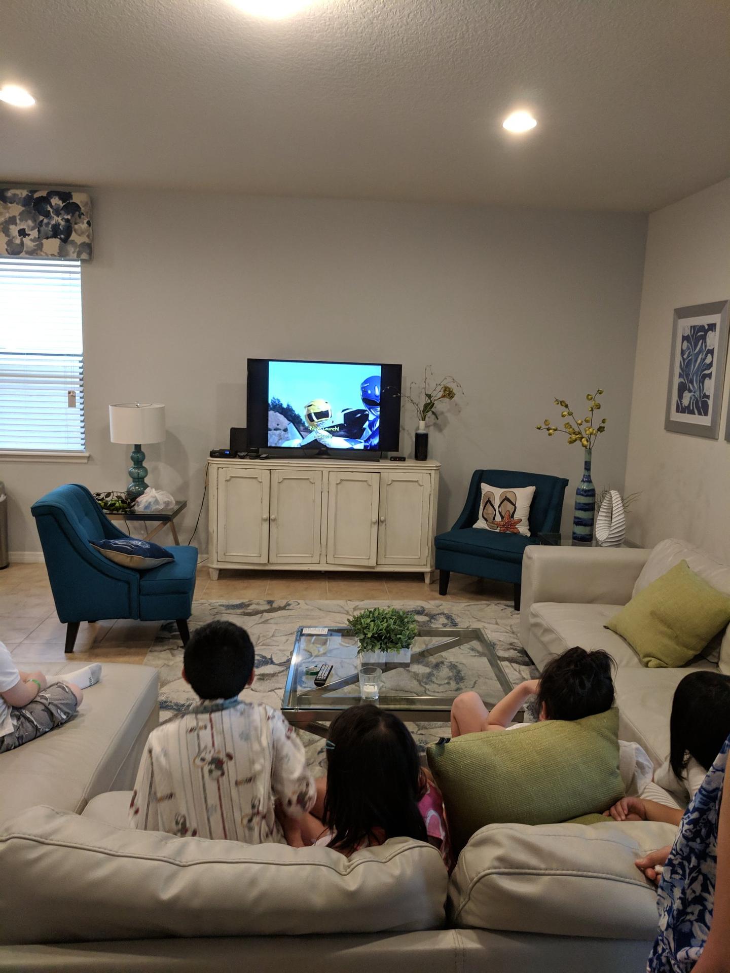 Picture attachment: my 7 year old niece and her friends watching Zyuranger on TV.