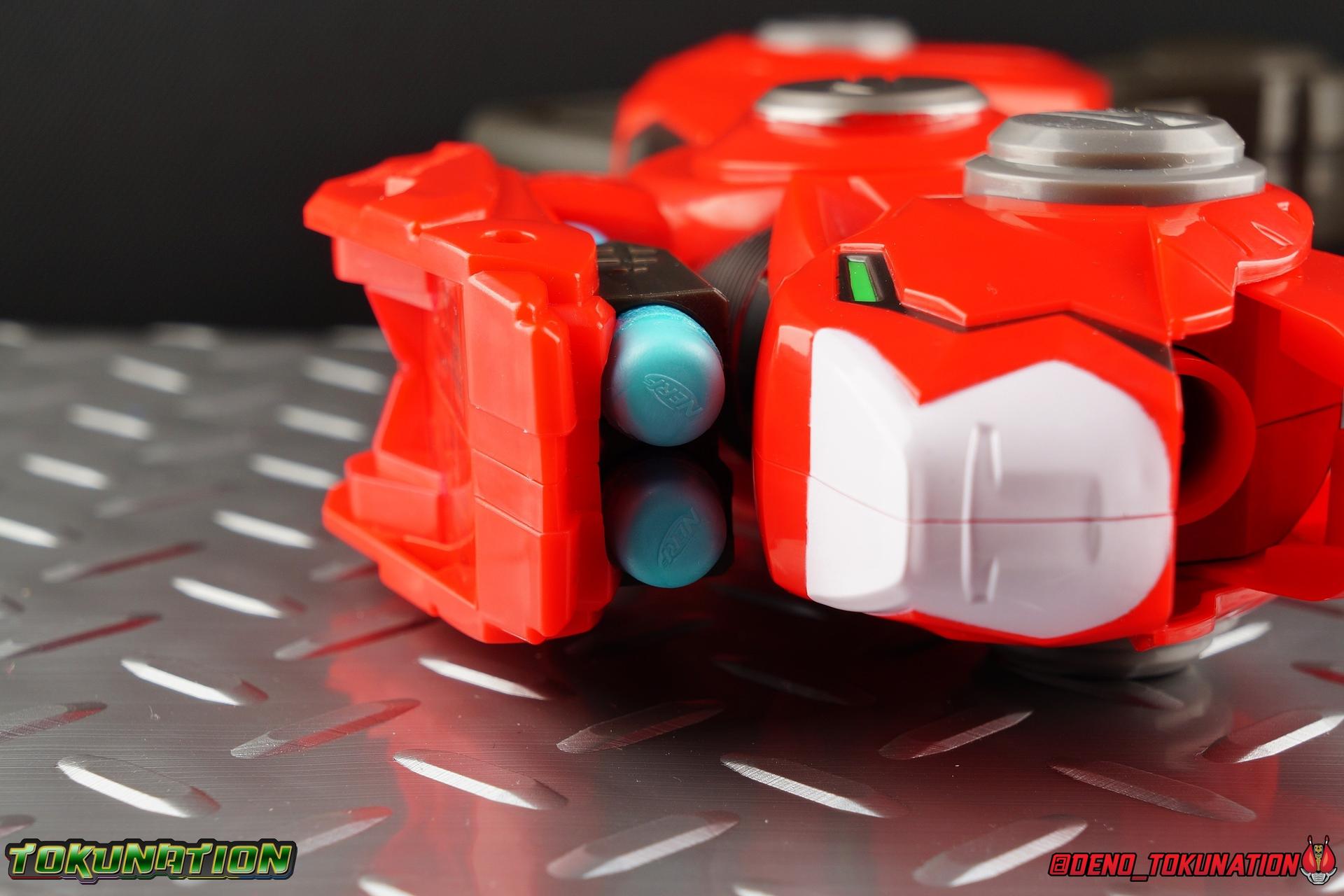 This things fires dart pretty hard and fast, so just play carefully as you should at any point when using a toy that fires projectiles. Don't for anyone's eyes, and don't be malicious. This is a fun toy that I think fans of all ages can have fun with. And seeing that we have an evil sort of Red Ranger as well this year in Blaze, I'd love to see a dark red and black repaint of this thing to go with him. His 6" basic figure comes with one so it only makes sense to me. And as long as we're getting original weapons, and NERF ones at that which is a first for Power Rangers, then I'd love to see some NERF swords & shields.