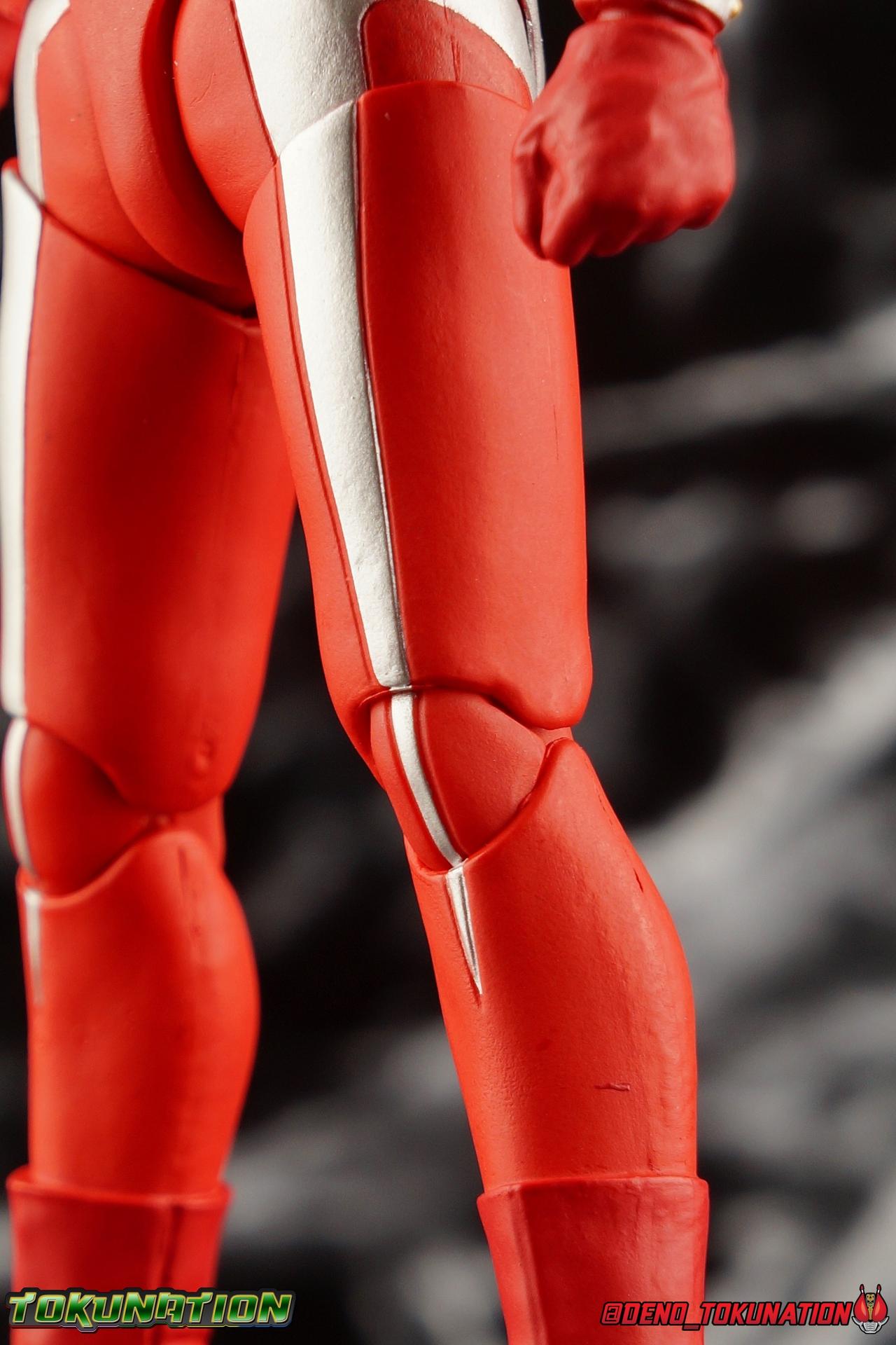 is recreated lovingly and faithfully in this figure. While there is most certainly always something to be said of the intricacy of modern Ultra suit designs, I think there are volumes to be said of classic suits like Taro as well. There's something unmistakably fantastic about the classic red & silver look of classic Ultras. While I've never been a massive fan of the original Ultraman's design, the way that base has evolved over the decades is kind of magical. Somehow the placement of Taro's silver body lines on his slender build, helps communicate his youth and strength as well. While the figure is largely red, the silver paint apps go a long way to bringing out additional detail. Along Taro's legs, hips, waist, and lower torso, these apps are contoured by sculpted in body lines that help create additional depth and detail.