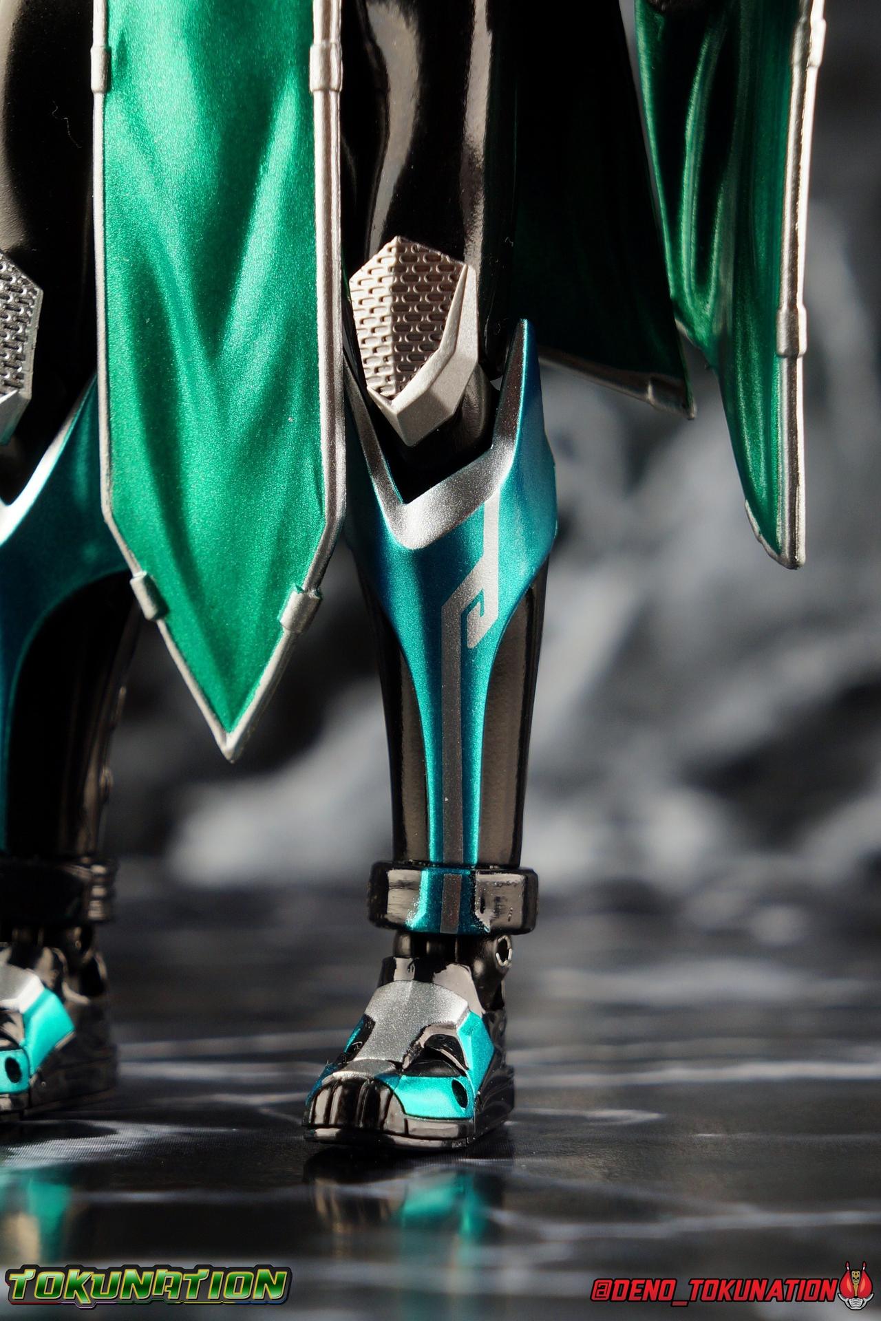 in the special itself Dark Ghost even comments on this fact. In toy form the gun mode has been omitted, leaving only the sword, no alternate parts are included. A slight remold to the weapon is present as well though, the glasses panel can no longer open and accept Damashii. Which also makes sense given Brain neither uses eyecons nor a gun form for his weapon. Ultimately it's a genius weapon to include with Brain given his signature bespectacled look. And it looks glorious in these various shades of green.