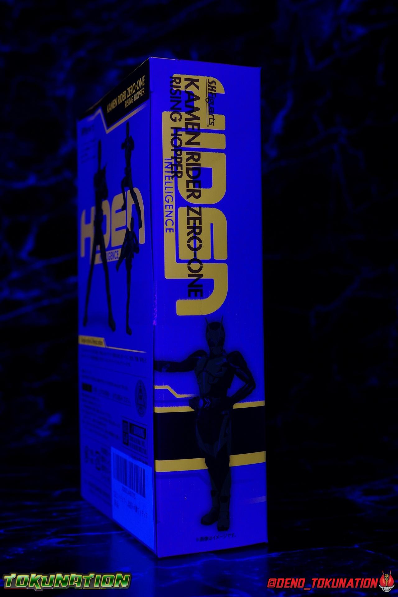 While it's hard to say that there have been any real innovations in Kamen Rider Figuart packaging in recent years physically, Zero-One's box does do something that's cosmetically pretty awesome. Emulating a feature present on the actual figure, the packaging features some black light reactive stripes that really glow brightly. It's a small touch but it ties in brilliantly with the actual figure. The box design itself is very reminiscent of Zero-One's own Rising Impact attack. And I always welcome the annual change in rider box designs, and this is no different. I'm super into it, and the blacklight lines are just an added bonus.
