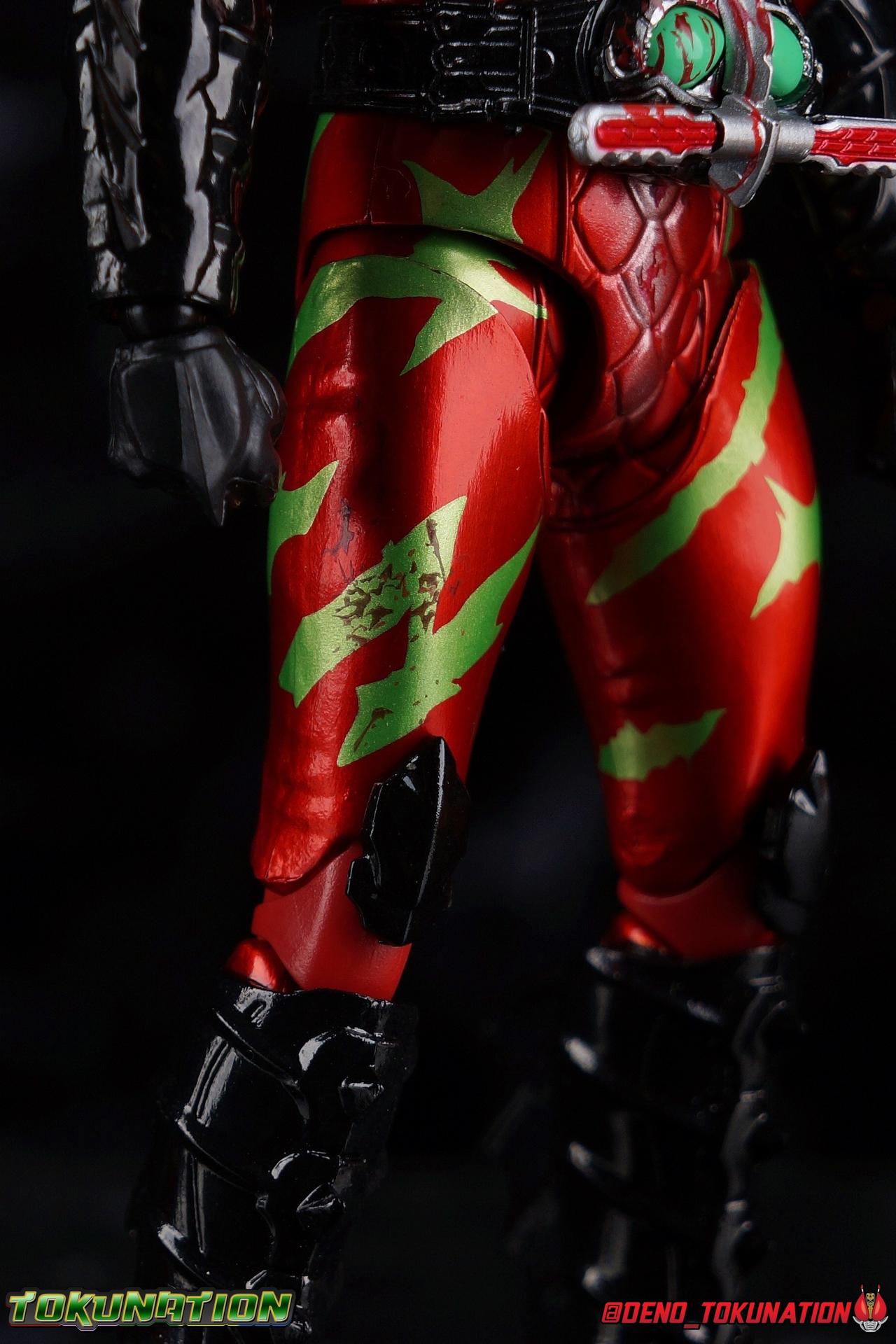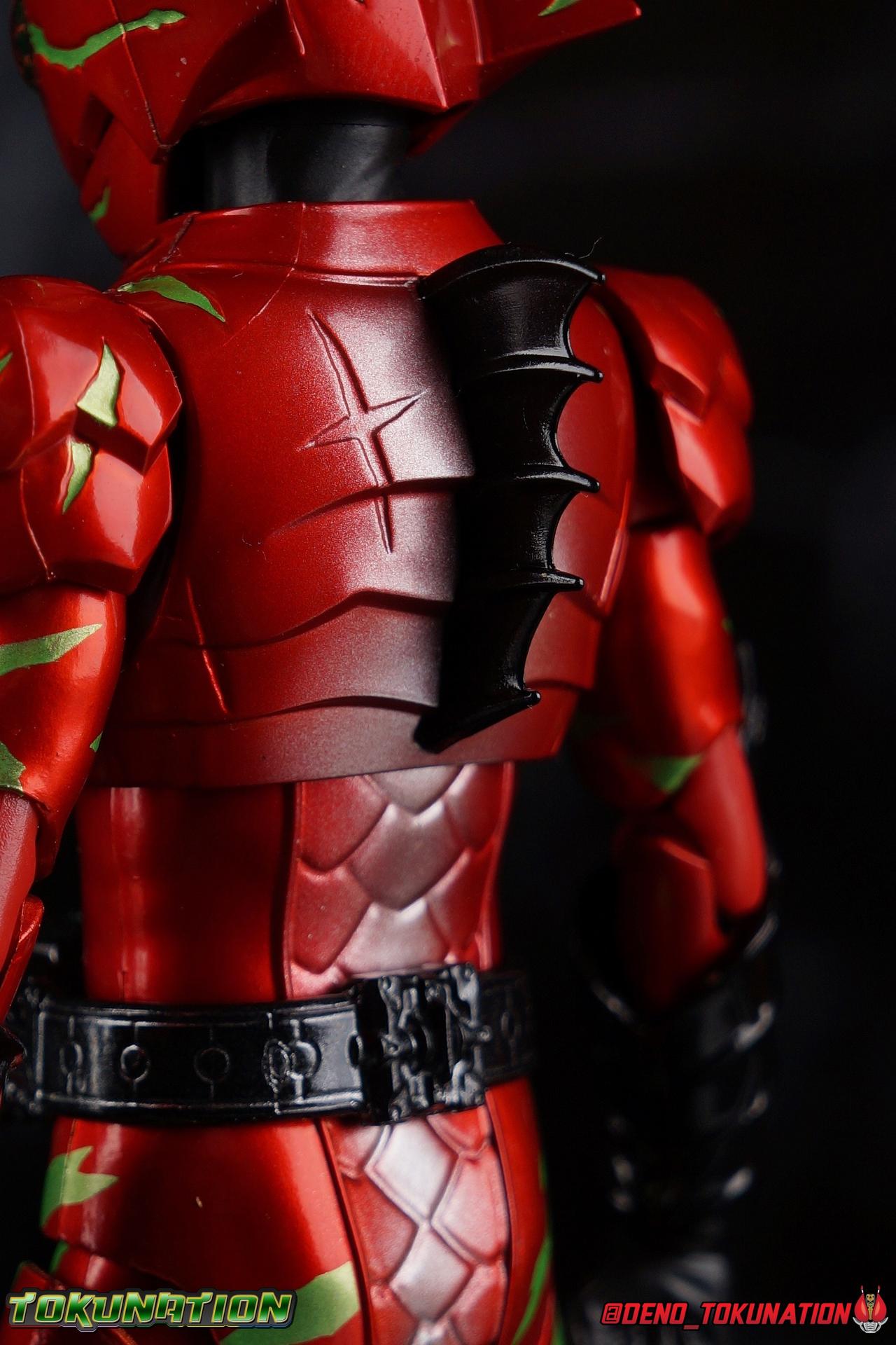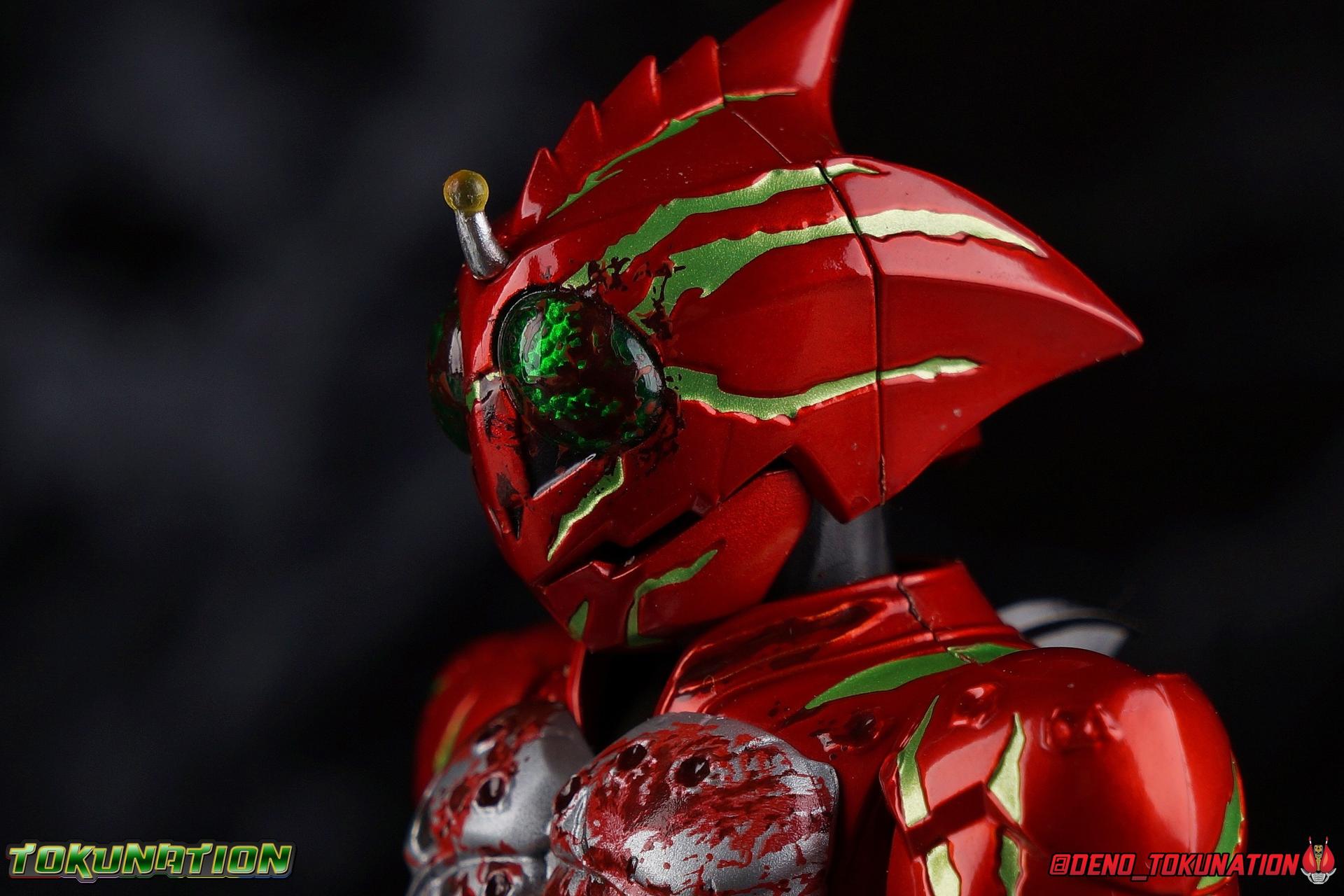 The only thing I'll take a bit of time to really talk about is the lavish new paint applications and slight remolds. Both of these figures are meant to represent Alpha & Omega, right at the end. In the heat of their final battle. Carrying over damage sustained to their human forms, each of them has fresh deep wounds, and blood pouring out. They both feature blood splatter across their limbs, but particularly across their torso and and heads. In particular their torsos are quite gruesome as Alpha features still bleeding bullet holes and Omega features deep scars. These parts are newly molded and are the only physical difference from the original releases of these molds. While that isn't exactly a ton of new stuff to report on, it's worth mentioning just how much care was put into making sure each of these Riders fully represented their final appearances.