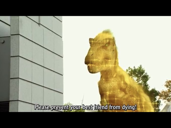 On the ground, Jin uses his last few minutes to entrust Hiromu with a Go-Busters Zyudenchi Kuroki had him create (when did he have time to do that?), before dying again.