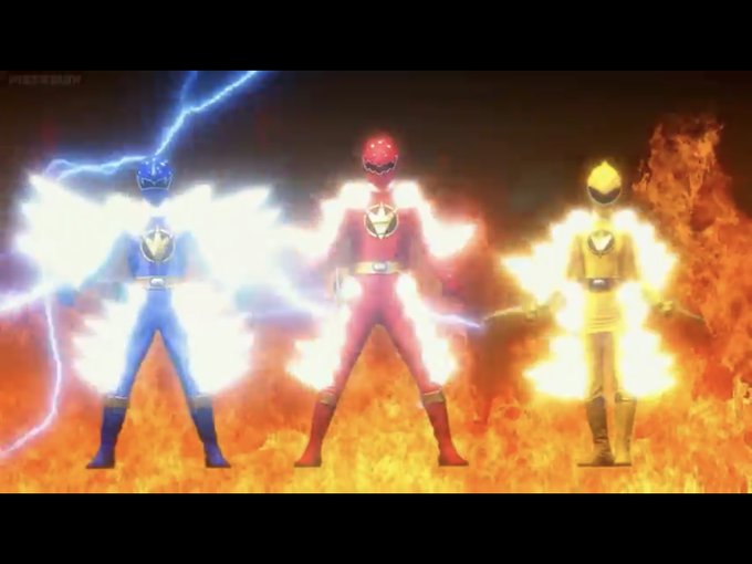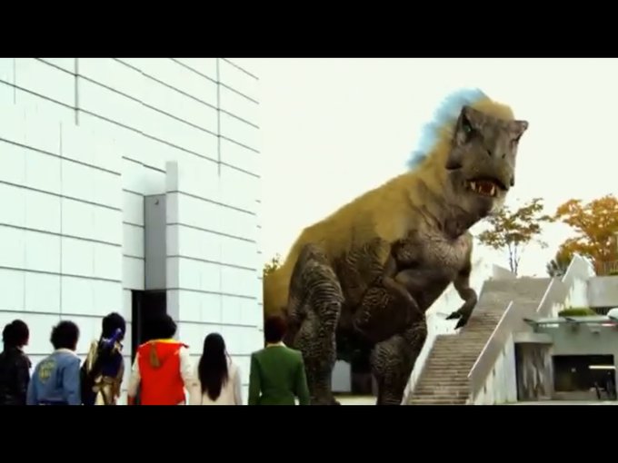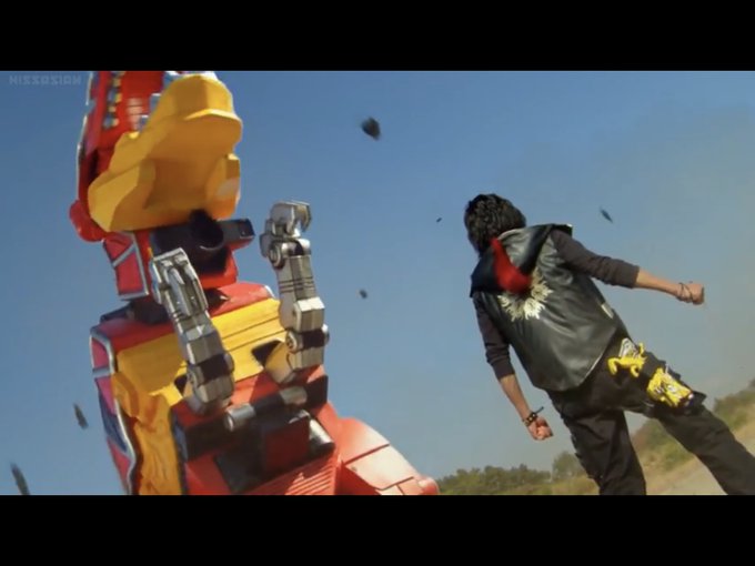 Cue a specially written song, featuring Kyoryuger's instrumentals, Abaranger's singer and composer and Zyuranger's lyrics.