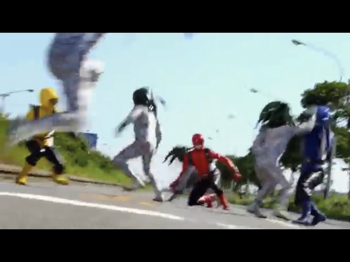 Finally, the Zyurangers take on Neo-Grifforzer in a slightly altered order, after entering their usual tower formation to do the Babel Attack.