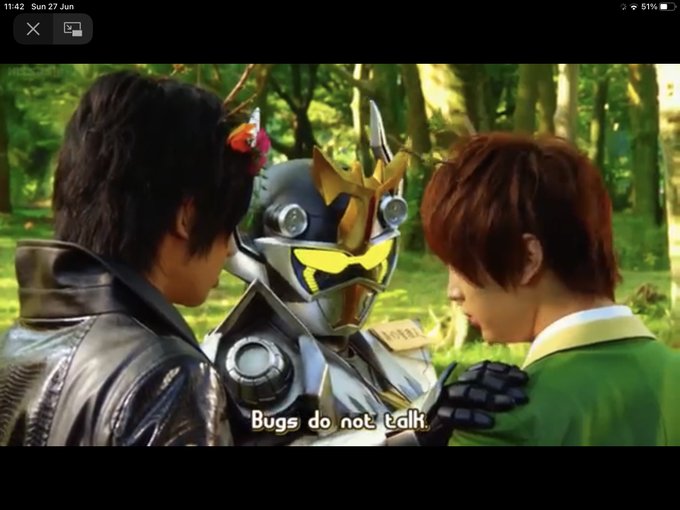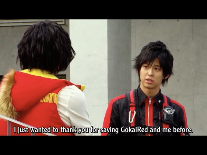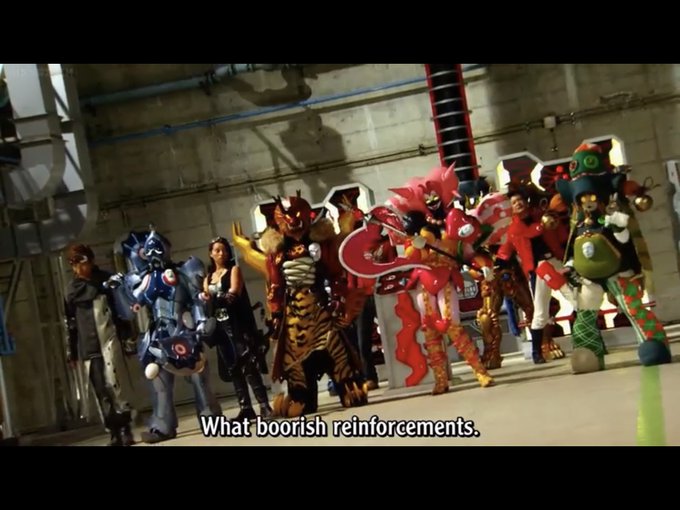 After Ichigou says they're not a Sentai, briefly confusing the others before they get annoyed, they take over the rest of the speech.