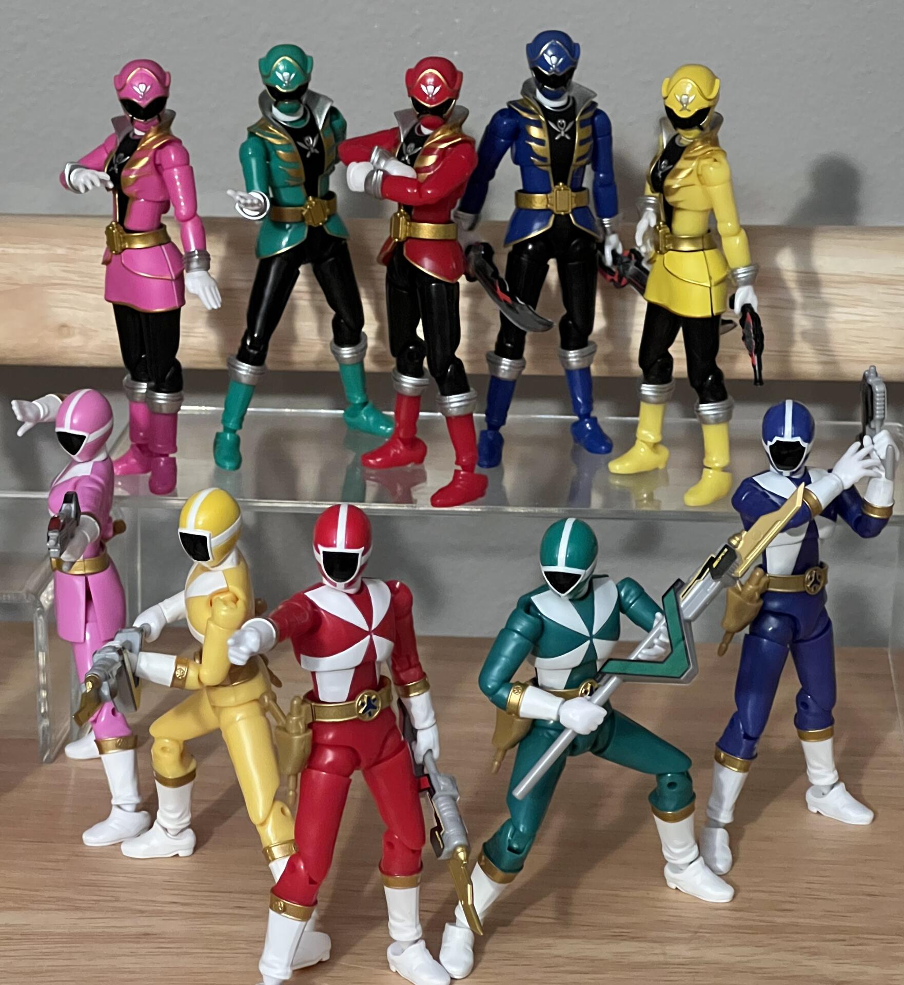 I got in the shodo set for Gokaiger. I basically just tried to do the pose on the cover of the box. These things are beautiful. Also GoGoV is here too. Those are also great. Something so satisfying about getting a whole team all at once. Or most of a team in Gokaiger?s case.