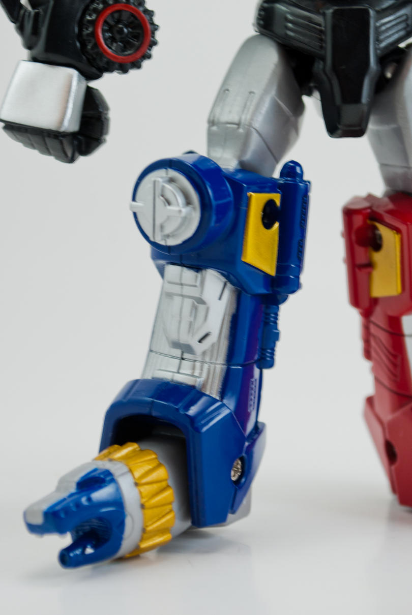 Bandai of America's line of articulated, 6-inch Megazords continues into 2013 with the release of the Gosei Great and Gosei Grand Megazords. While not officially packaged as 'Retrofire' figures, these two possess the stylized design and high articulation of previous releases in the line. Gosei Grand stands about 6 inches tall and has 20 points of articulation including 5 in each arm, 4 in each leg, a waist that can turn 360 degrees, and a ball-jointed head. There is a lot of sculpted detail on the figure and only some parts lack paint applications. Overall, this mini Gosei Grand is a