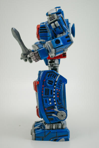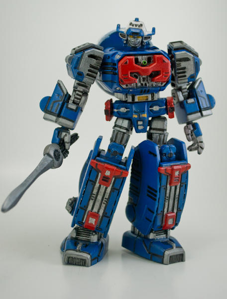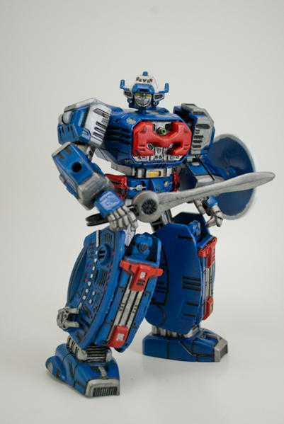 The Astro Megazord has 18 points of articulation and comes with it's sword, shield, and blaster. It stands around 5.5 inches tall, right in scale with SRCs but can be larger than other retrofires. The Astro Megazord was made primarily from a 5' Astro Megazord from the Action Zord subline and a classics 2-pack Optimus Prime. It was painted with citadel brand acrylics and detailed with a gundam marker. Last edited by conundrum; 02-03-2013 at 10:28 AM.. |