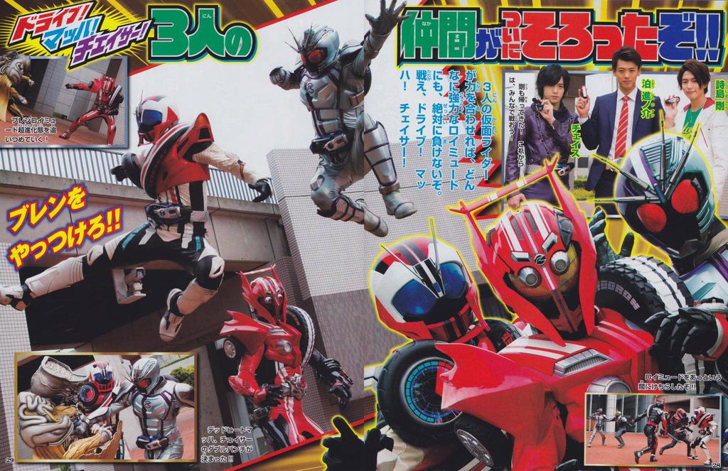 The golden Roidmude just look silly but I'm liking Tridoron - the mixup tires aren't looking as silly as I initially expected and although I was already pretty set, a clearer look at the suit still makes it look alright. Not sure about Belt-San appearing on the visor but whatever on that.