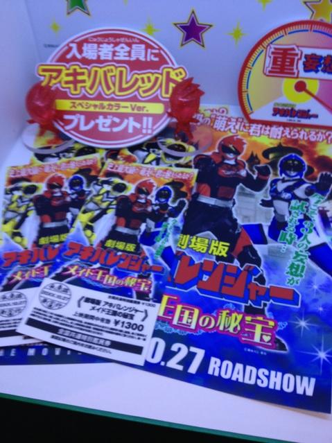 Hey! Have you heard the hot rumors about Unofficial Sentai Akibaranger the Movie: Treasure of the Maid Empire? Well that's all they are! Rumors of an Akibaranger feature film were actually fabricated by the shows production staff! It was an elaborate gag that began as a joke on twitter and played out quietly at Tamashii Nations 2012. They even went so far as to produce fake movie posters, tickets, and an Akiba Red giveaway mini figure!