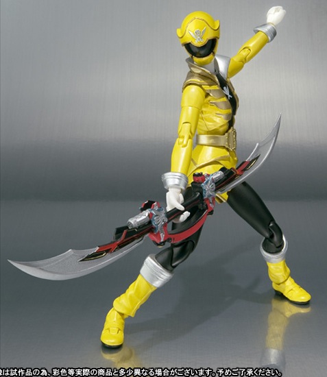 According to the Tamashii Web Shop, it looks like SH Figuarts Gokai-Pink will come with a solid double gun to pull off the look from the show, as well as the grappling hook, and Gokai-Yellow will come with a double ended Gokai-Saber, as well as Gokai Sabers on wires from her signature move from the show.