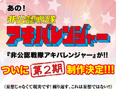 At the Kamen Rider and Super Sentai live event held in Toyko earlier today, it was finally confirmed the Unofficial Sentai Akibaranger will indeed be returning for a second season! At this current point in time there's no further news other than the initial confirmation, however fans have been told to keep an eye on the official Akibaranger website for future updates.
