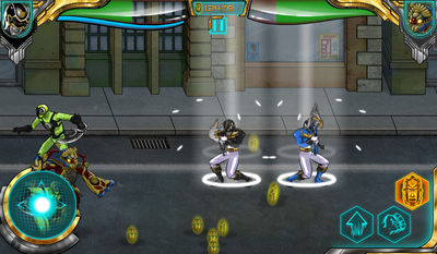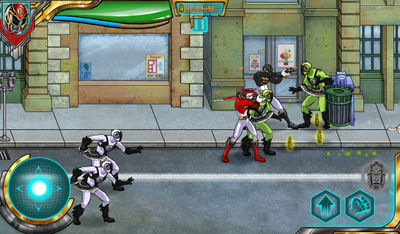 In Never Surrender, players help their favorite rangers take on the pesky Loogies and fearsome Warstar Aliens. They can also form their own teams of two by choosing the ranger they wish to play with; from there they’ll battle their way through waves of oncoming enemies in familiar environments from the show. Each ranger has their own specialized combo attacks, augmented attacks and a team up Megaforce attack – along the way, players collect Gosei coins in order to redeem Megaforce Power Cards that grant their rangers enhanced weapon and elemental abilities. As well as a gallery of screenshots from the game (which you can view after the jump), Rangercrew have also uploaded a promotional video which we've linked for you below;