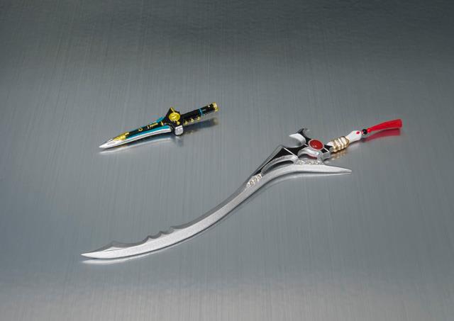 Dragon Ranger/Green Ranger will come with his trademark Zyusoken/Dragon Dagger as well as the Hellfried Sword/Sword of Darkness. It does not however appear at this time that the Dragon shield is removable for use with Tyranno Ranger/MMPR Red Ranger. US retail for this figure will be $44.99 through Bluefin, Japanese pricing is unconfirmed at this time.