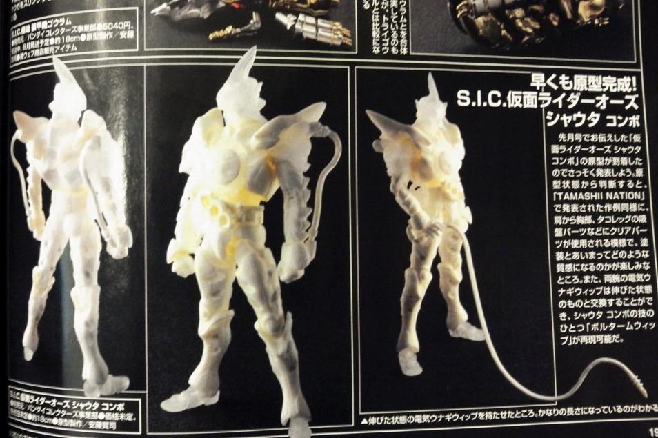 Seen previously at Tamashii Nations 2012 a prototype for SIC Kamen Rider OOO ShaUTa Combo has just been revealed in this months issue of Hobby Japan!