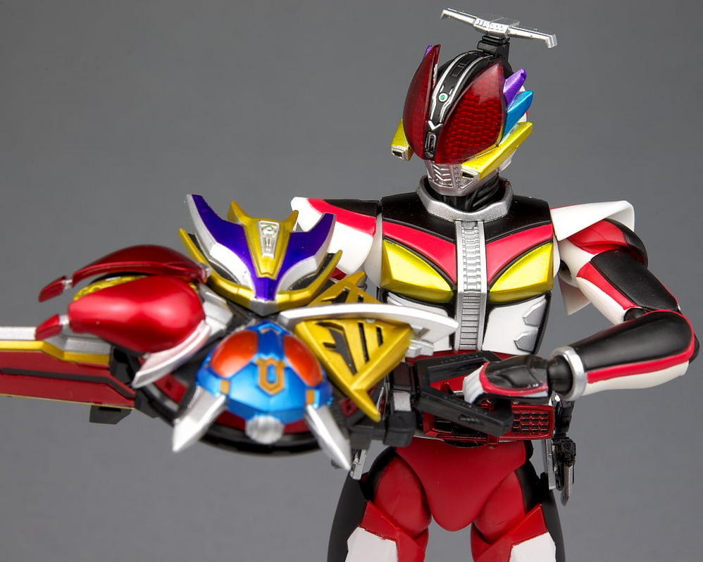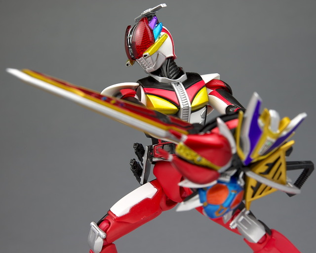 The final form of the titular Rider in the Kamen Rider Den-O series, he comes packaged with the DenKamen sword, his Rider pass and a rather small selection of alternate hands. Check out a selection of the gallery after the jump!