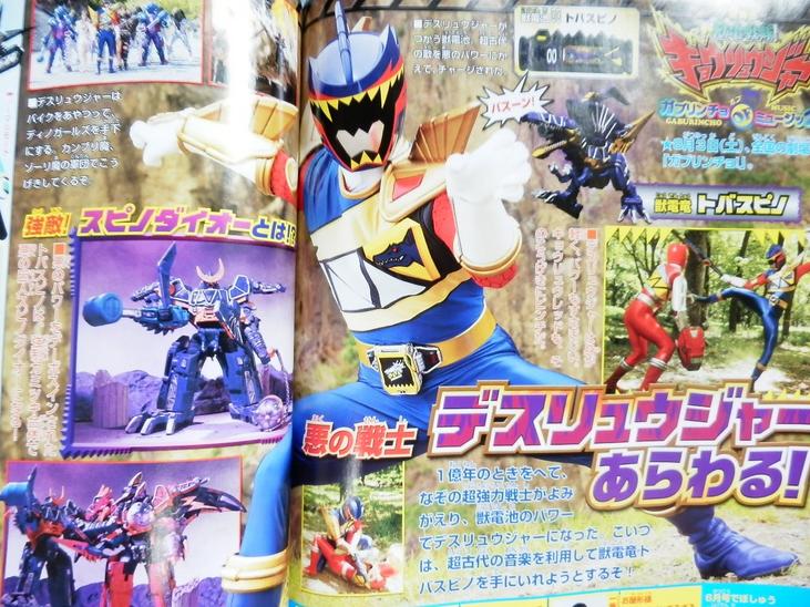 Courtesy of Orends Range we have a smattering of new images from Kyoryuger The Movie: Gaburincho of Music! These new images showcase the evil Kyoryuger Deathryuger, his mecha Tobaspino, and it's combined form with Anykdon and Bunpachy, Spinodaioh!