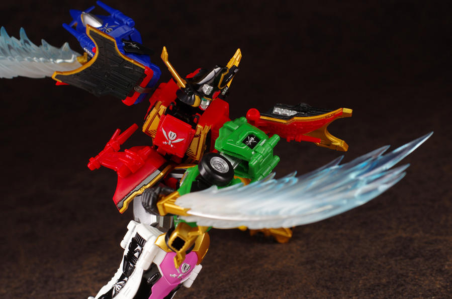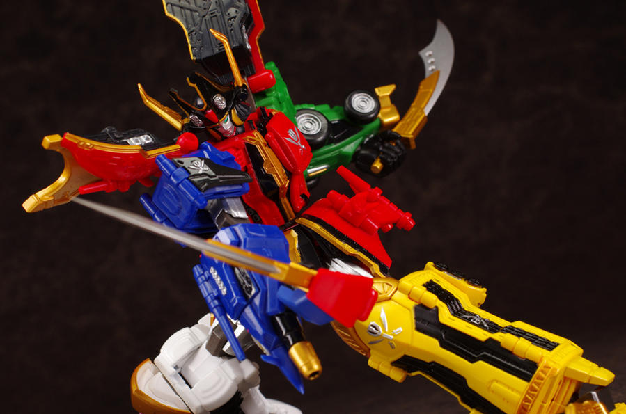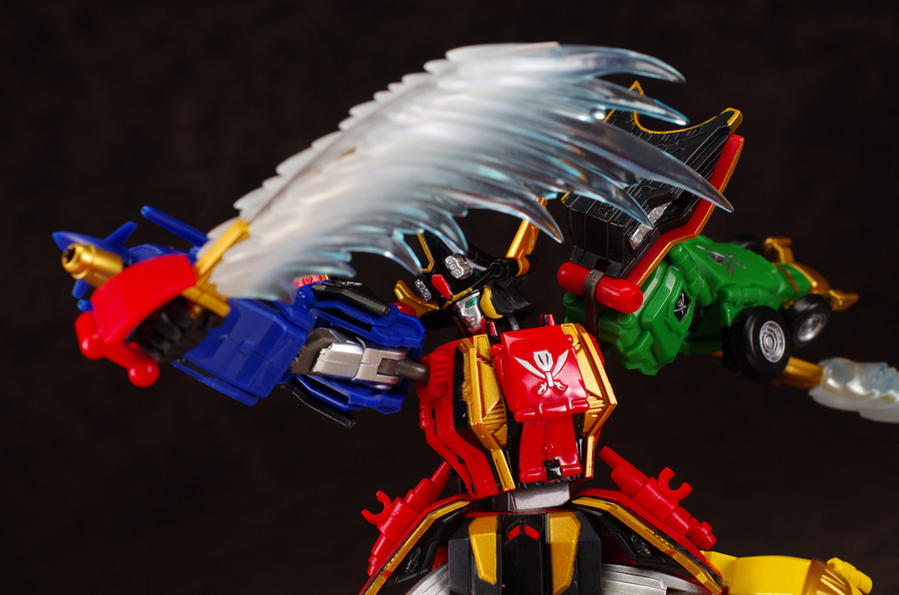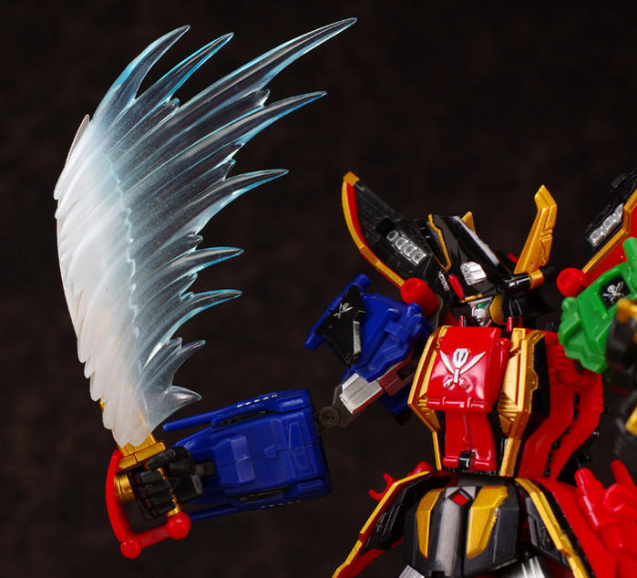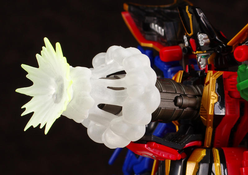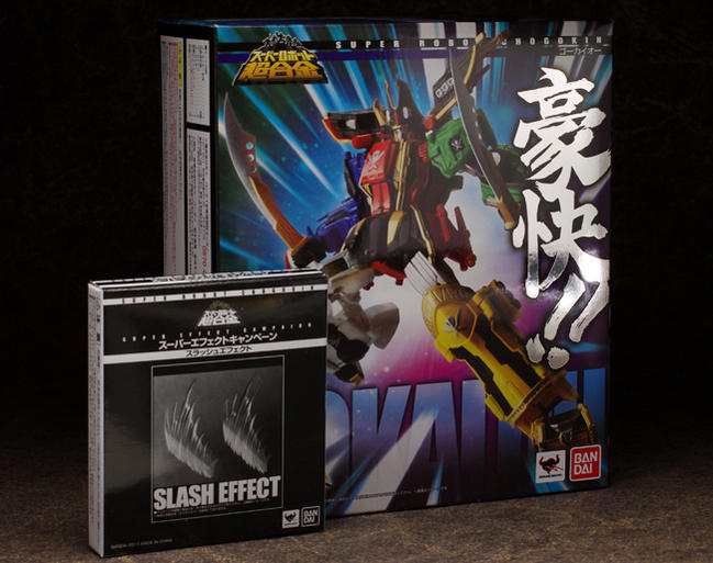 Schizophonic 9 has posted new images of the recently released Super Robot Chogokin GokaiOh! Also seen in this batch of images are the slash effect parts. If you wanted a fully articulated diecast GokaiOh, this is the figure to get! Also shown are closeups of the opening panels, and images which give a good idea of just how articulated(it can do the splits!) SRC GokaiOh is. More GokaiOh goodness after the jump!