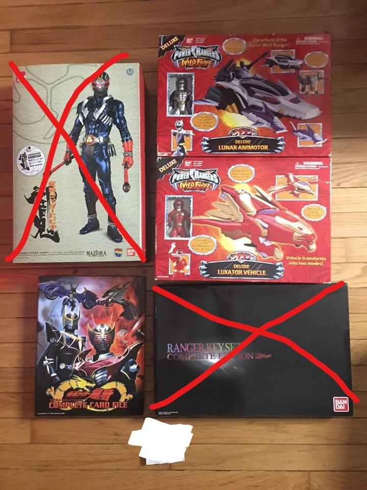 -Operation Overdrive Crane Zord 10$ shipped -Time Force Quantum Ranger Sword Part 7$ shipped -Time Force Ranger Figure Weapons Prices Vary So PM -Time Force Pink Vector Cycle Weapon Parts 10$ shipped -Time Force Blue Mega Battle Armor (Complete no figure) 10$ shipped -Time Force Blue Battle Warrior Armor Parts (Complete no fig) 20$ shipped -Time Force Green Battle Warrior Armor Parts (Complete no fig) 20$ shipped -Wildforce Yellow Save Cycle Weapon Parts 10$ shipped -Wildforce Blue Savage Cycle Weapon Parts 10$ shipped -Wildforce Blue Savage Battle Ranger Parts 10$ shipped -Wildforce Lunar Animotor NEW(Sealed) 60$ shipped -Wildforce Luxator Vehicle NEW(Sealed) 50$ shipped -Turbo Sword and Blaster Accessory 10$ shipped -Zeo Sword And Blaster Accessories 10$ shipped -Zeo Auric Megazord Fully Complete 40$ shipped -Lightspeed Rescue Titanium Axe Weapon Accessory 10$ shipped Kamen Rider: -Kamen Rider Ryuki Complete Card File 104 advent Cards For All Riders Including Most Of Oujas 75$ shipped -W Extreme 1/2 Scale Helmet With Base 40$ shipped -Fourze Driver With Billy the Rod 40$ shipped (missing Radar Switch) -Hibiki Animal Disk 15$ shipped Sentai: -Hurricanger Sword With Blaster Attachment and Plates(with case) 50$ shipped -Hurricanger Wind, Earth, Water Blaster Set 45$ shipped -Ninninger Guitar With Elemental Star 35$ shipped -Dekaranger Deka Bike Megazord 40$ shipped -Abaranger Yellow Daggers 15$ shipped -Lot of Sentai Parts PM for prices -Go Onger Megazord with black and green zords (Has Red Engine Soul, no weapons) 55$ shipped -Go Onger DaiShogun Megazord(Has shield, no sword, no emblem parts) 65$ shipped -Boukenger Metal Detector Blaster 20$ shipped -Boukenger Sentinel Knight 25$ shipped -Hurricanger Black Megazords Lot 220$ shipped -Hurricanger Sword With Blaster Attachment and Plates(with case) 50$ shipped NON TOKU ITEMS: Digimon Interactive Guilmon 125$ shipped Evangelion SPEC-XS 09 Sold Email is noahcirelli@gmail.com If interested in multiple items im willing to give a discount, and also am up to negotiate whatever item a person is interested in. If there is a item pictured but not listed I most likely forgot to list it so just comment or pm. Last edited by noah3128; 01-07-2020 at 03:28 PM.. Reason: New Stuff |