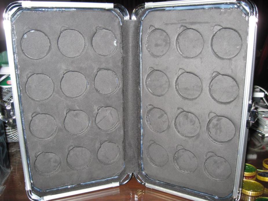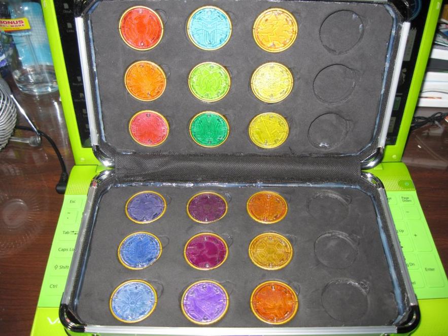 I cut out the CD pages and then cut some foam sheets to fit in and then cut out slots for the medals. Since the foam was just sheets, I had to cut out many many medal slots and then stack the sheets. After everything was cut, I glued it all together. It's not perfect, but I'm very proud of it. The Core Medals I had customized a couple days ago, I simply opened them up and applied a coat of silver with a Testors enamel paint marker. Factoring in the time used on the medals as well as the case, it all took about 8-9 hours in total.