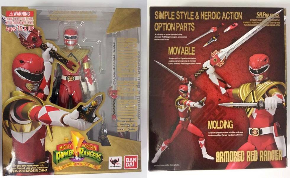 We have our first images of the packaging for the upcoming Mighty Morphin Power Rangers Armored Red Ranger SH Figuart from Bluefin Tamashii. This figure is set to release in October, a full month ahead of the Japanese release of the same figure.