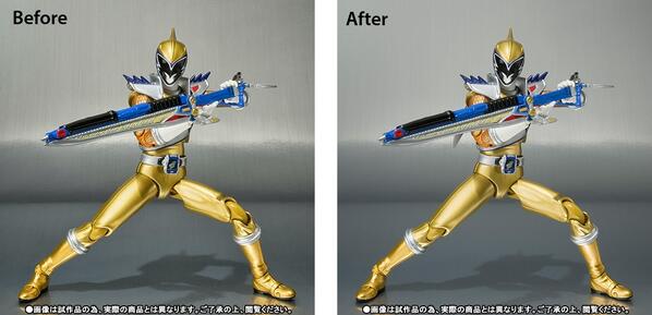So thanks to @ptoadstool on Twitter for this one, but recently Bandai/Tamashii has been a bit of a sneak an slighty adjusted one of S.H. Figuarts KyoryuGold's photos (Whether it's been through a reshoot or a simple really well-done Photoshop job) to include something many people have complained about: His wings! https://twitter.com/ptoadstool/statu...876929/photo/1