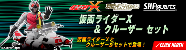 Single Pack Release August Tamashii Web Exclusive 4860 yen ![]() Kamen Rider X's Cruiser 2-Pack With Rider Release August Tamashii Web Exclusive 8316 yen