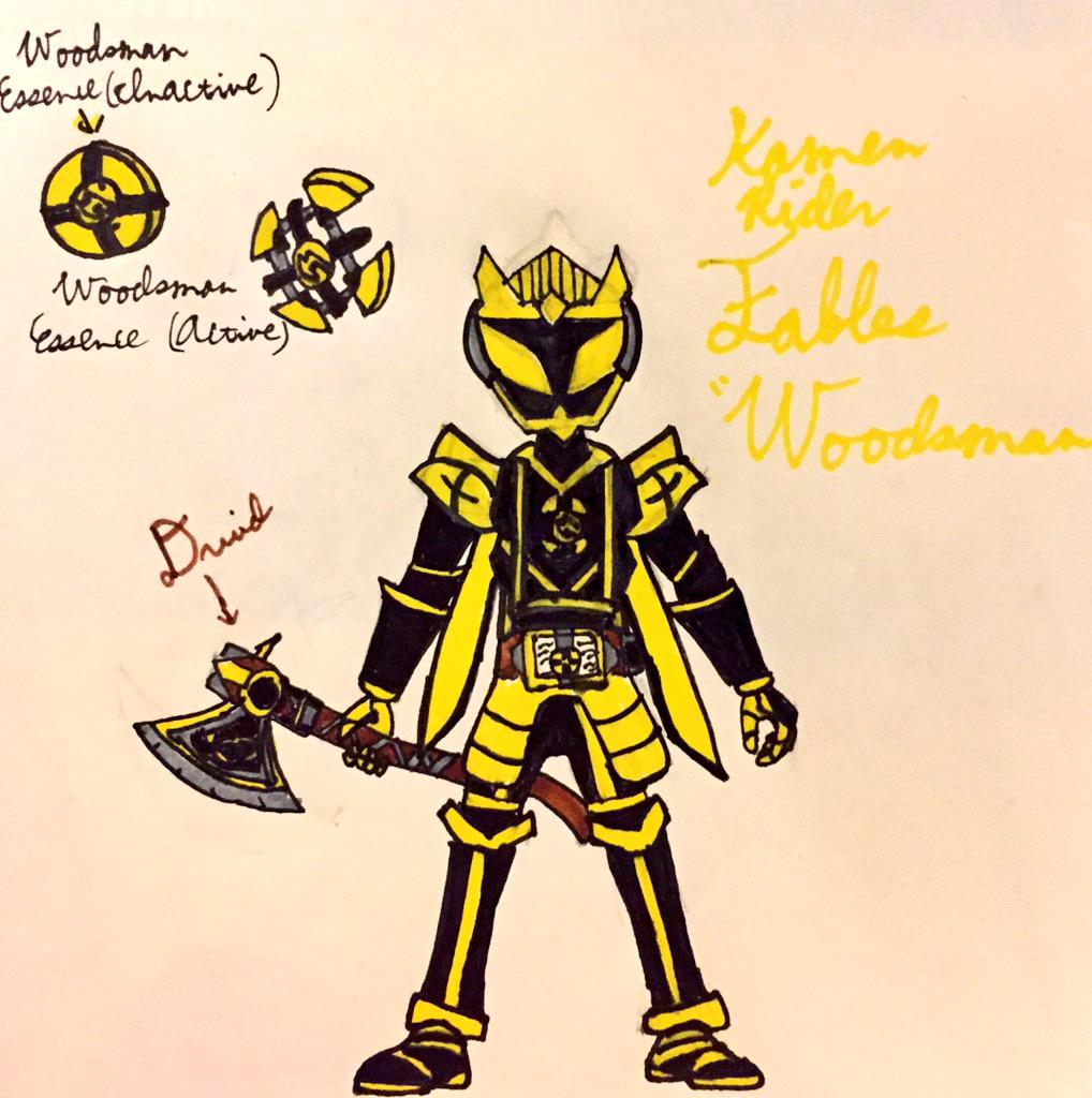 ![]() Kamen Rider Fables- Woodsman! Data: Kamen Rider Fables/Seiji Kishimoto: 18years old, Seiji was raised by his father, who is the head of STORY. Meant to be out of the loop of STORY’s actual operations until the age of 21, he was drafted early following the death of his childhood friend and the original partner of Akari, the former Fables, Takeru Kirisaki. Seiji loved Fairy Tales as a kid, so his passion for them provide the perfect synchronization rate needed to operate the Fables System. A bit headstrong, it takes the tutelage of his three assigned Fables and Akari to get him to understand how to use the Fables System to its full potential. Fables System -The Fables System is a unique belt like object that takes the powers of Fables to incorporate into the Fables Armor. Utilizing a unique scanning system, it takes data from the Fables to give its user power. The finishing call of the belt is “The End,” allowing Fables to take down the rogue Fairy Tales and Folklore he fights. Essence: The Essence are orbs powered by the Fables that assist Seiji. Each one contains a sizable amount of power. When placed in the Once Author port, it is then scanned by the Turn Pager. Essences need to be refilled with power after 5 uses and can be used to communicate with the Fable that powered them or be used in a weapon for a finishing move. -Woodsman Essence: The Essence powered by Mori, it is yellow in color. -Woodsman: Fables’s default form, Woodsman is armed with the axe, Druid. Though this form has immense strength, Seiji’s physical limits allow him to only be able to use this form for 3 minutes per transformation. Its The End is “Timber,” in which tree roots sprout from the ground and ensnare the opponent before Fables chops through them with a mighty swing.
