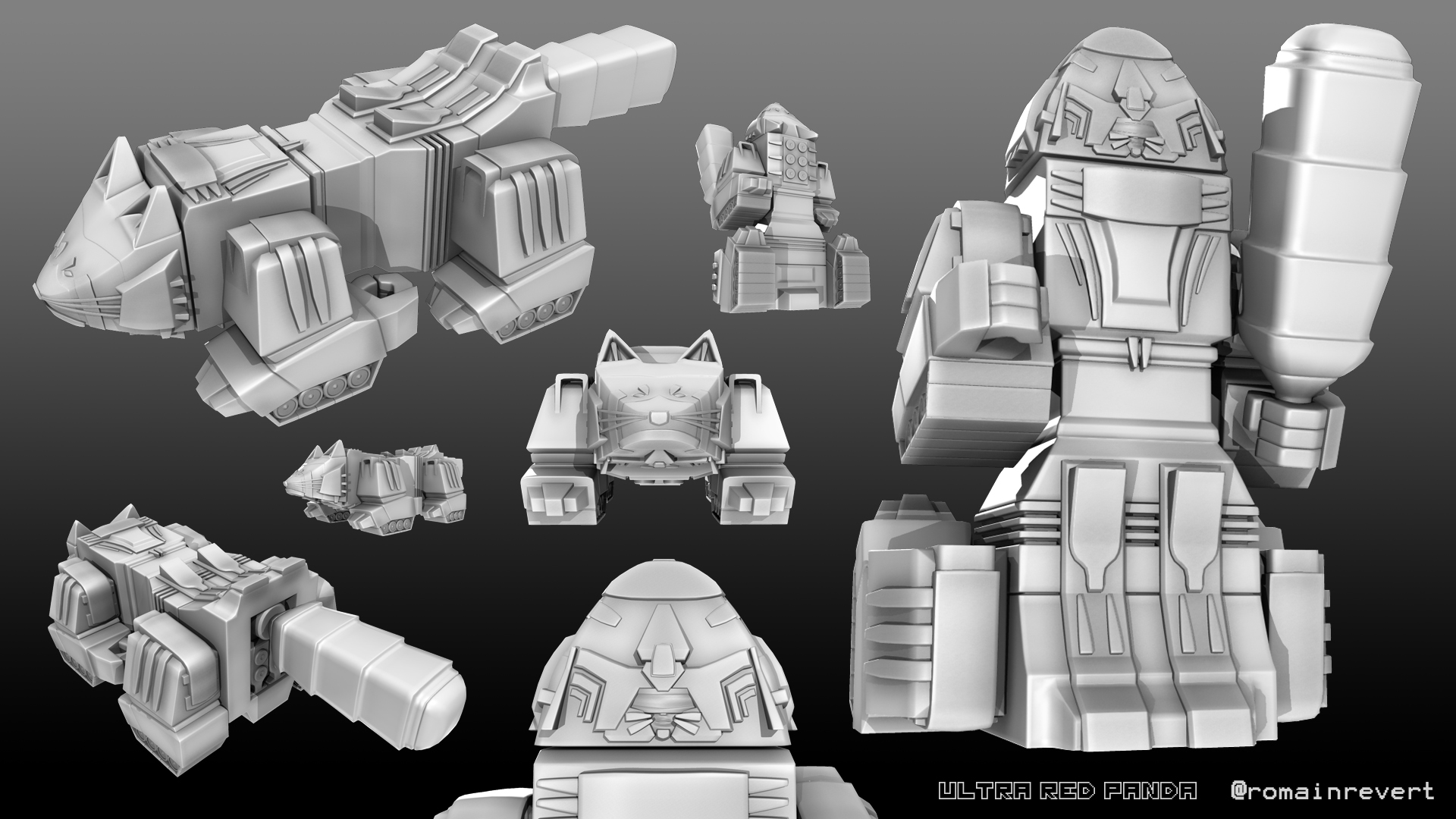 As a big tokusatsu mecha fan since 4 or 5 years old (thx Bioman) and as a 3D artist, I always want to do a 3D print of my own super sentai mecha... I always loved the big mecha like Dekabase, Daimugen or Lion Ha-Oh . So I decided to do a red panda inspirated by them. It still WIP and need a lot of work. UPDATE 08/14/15 :