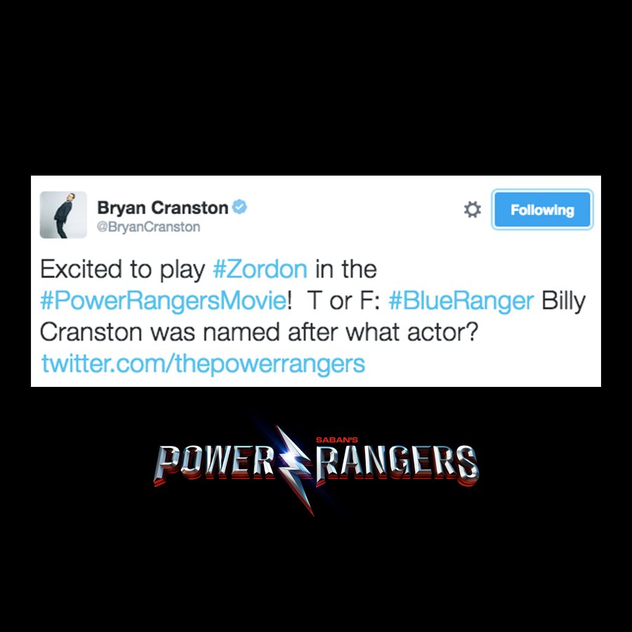 OH MY GOD! It's so hilarious that this is NOT a first time Bryan Cranston working on POWER RANGERS! He voiced one of Monster of the week in Mighty Morphin Power Rangers!Bryan Cranston is like another biggest name they got beside Elizabeth Banks! |
